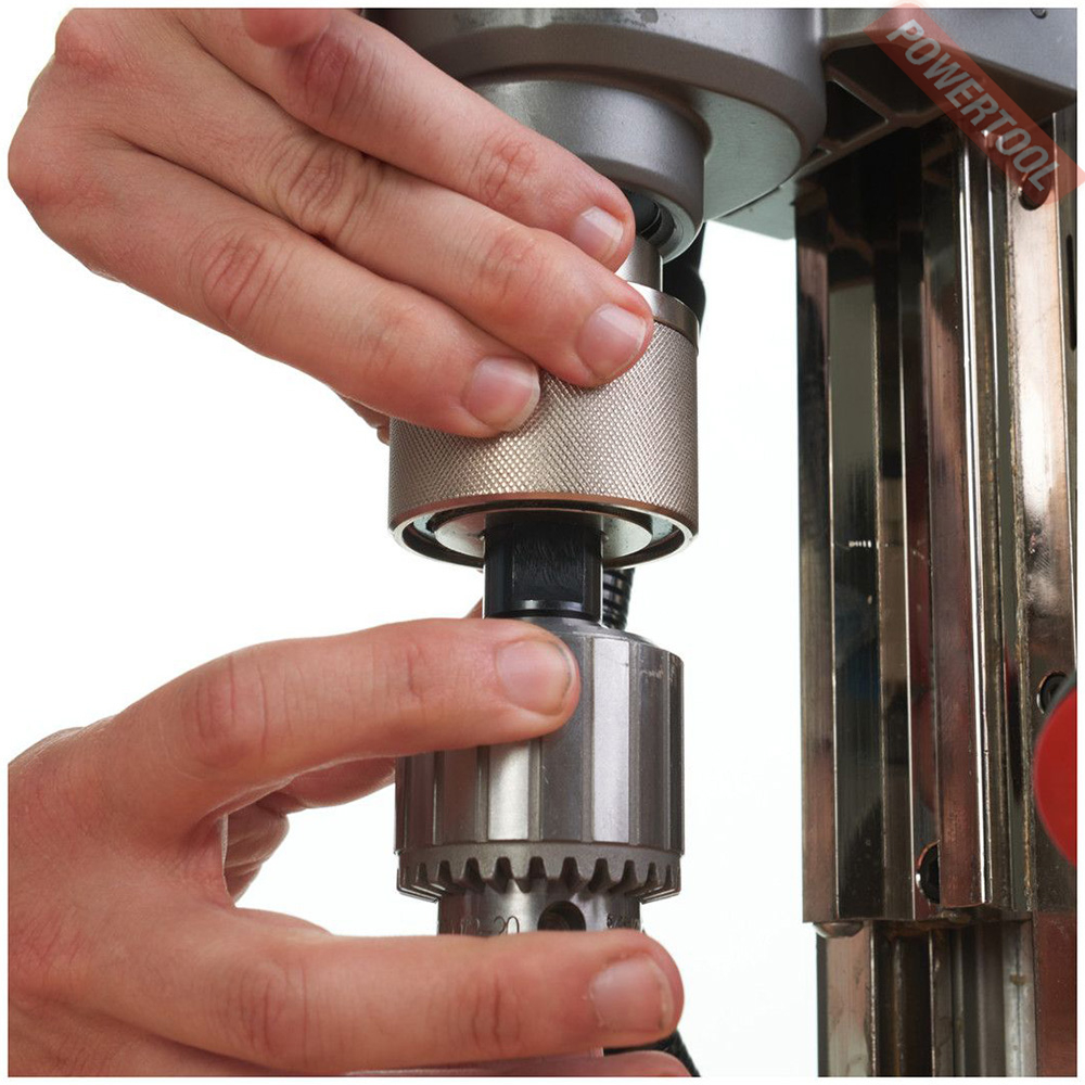 • Максимальный диаметр сверления кольцевыми фрезами 38 мм и максимальный хвостовик цилиндрического сверла 13 мм.