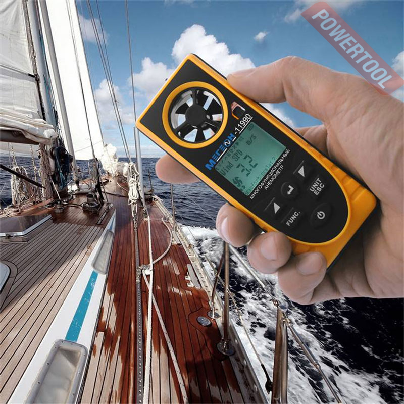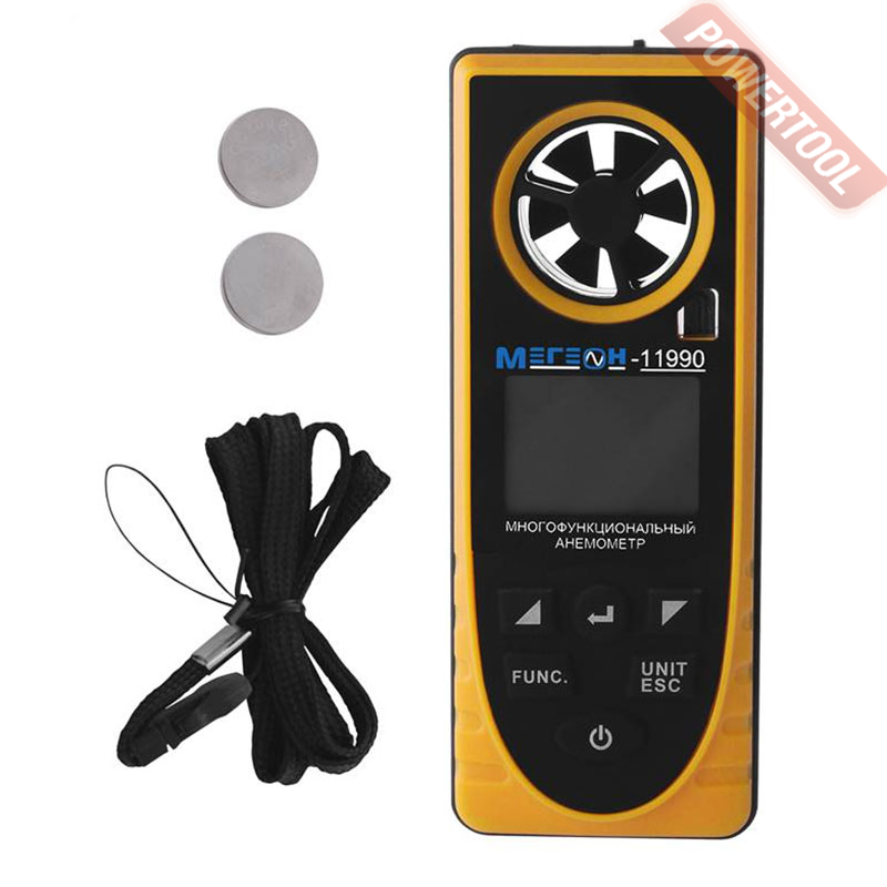 Анемометр многофункциональный портативный МЕГЕОН 11990 - представляет собой портативный многофункциональный инструмент сочетающий в себе функции нескольких приборов. Он подходит для измерения относительной влажности, показателей температуры, уровня освещенности, точки росы, скоростных параметров ветра, атмосферного давления, коэффициента охлаждения ветра, а также позволяет определить высоту над уровнем моря. Наличие интегрированной памяти дает пользователю возможность сохранять результаты измерений, как в ручном, так и в автоматическом режиме.