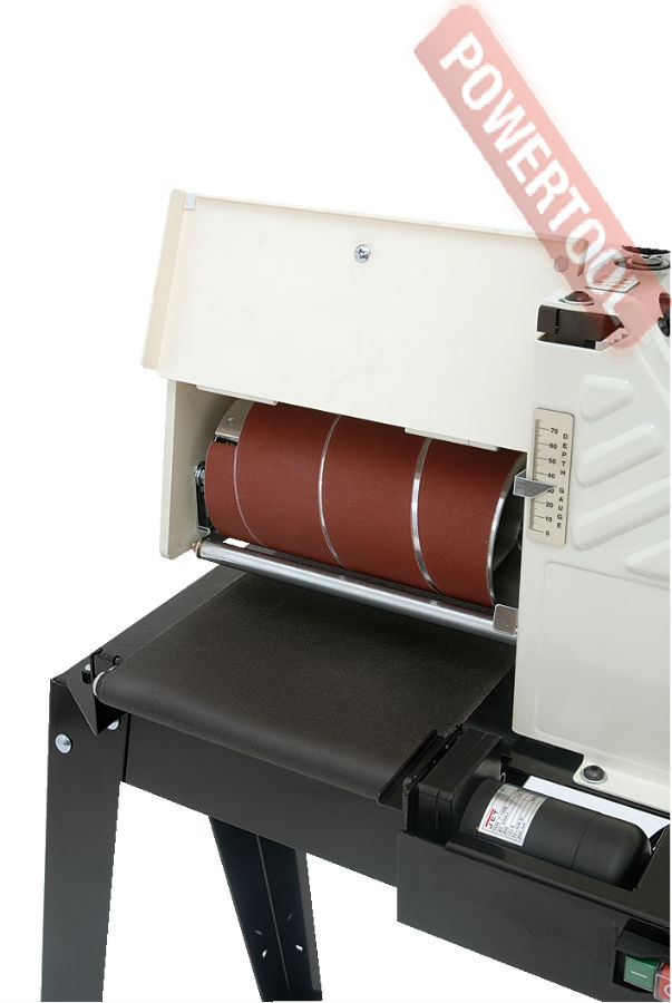 Барабанный шлифовальный станок, 1300 Вт, 220 В, 1400 об/мин, ширина шлифования 255 мм / 510 мм в два прохода, ширина шлифленты 75 мм, диаметр шлифовального барабана 127х255 мм, скорость подачи 0-3 м/мин, толщина заготовки 0,8-75 мм, мин длина заготовки 60 мм, штуцер 100 мм, габариты 510х690х510 мм, вес 44 кг.