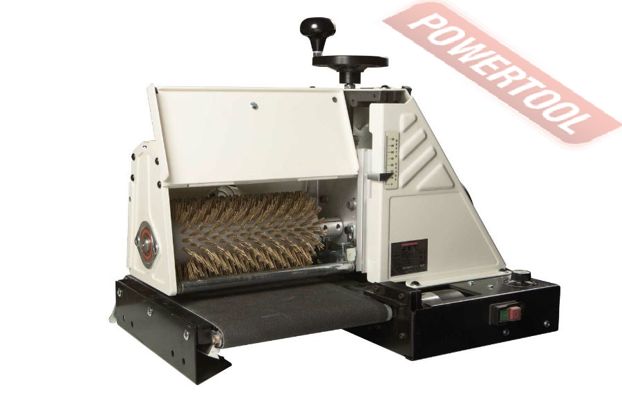 Барабанный шлифовальный станок JET 10-20 Plus - универсальный барабанно- и щеточно-шлифовальный станок компактного класса. Вал и щетки для браширования приобретают за отдельную плату, в стандартное оснащение входит барабан для намотки абразивной ленты. В зависимости от ее зернистости станок может выполнять самые разные работы, начиная с калибрования заготовок из дерева и заканчивая их финишным шлифованием. Подходящие полосы можно нарезать самостоятельно, фиксируются они в специальных зажимах без использования клея или «липучек». Запатентованная конструкция с пружиной упрощает плотную равномерную намотку и обеспечивает автоматическое натяжение, как в начале работы, так и по мере растяжения ленты. Вал расположен консольно, что позволяет обрабатывать детали, ширина которых превышает его длину. Маховик сверху корпуса отвечает за регулировку просвета до транспортерной ленты (настраивается в зависимости от толщины заготовок). Подача деталей производится с помощью транспортерной ленты, скорость ее движения плавно регулируется в диапазоне от 0 до 3 м/мин. Докупив опционный вал и щетки, станок можно переоборудовать в так называемый брашировальный. Он позволяет производить текстурирование дерева с различными эффектами. Важно, что станок позволяет добиться одинаковой глубины обработки (повторяемости) и, кроме того, гораздо эффективнее популярного ручного электроинструмента, предназначенного для решения схожих задач.