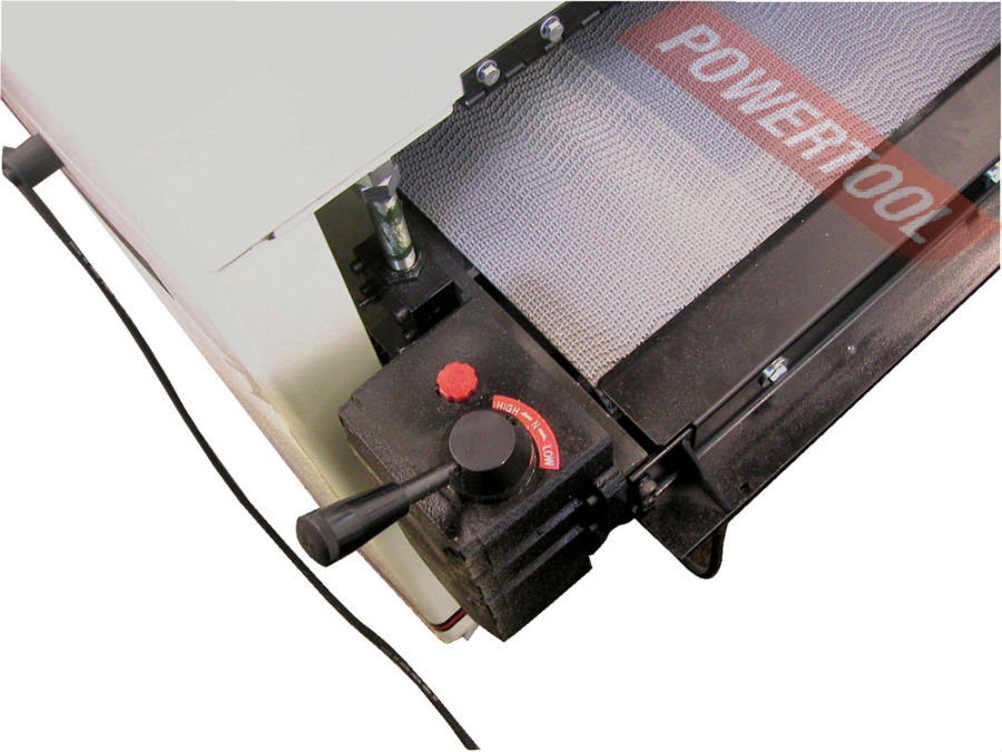 - Регулировка высоты транспортера (толщины заготовки) вращающимся маховиком.