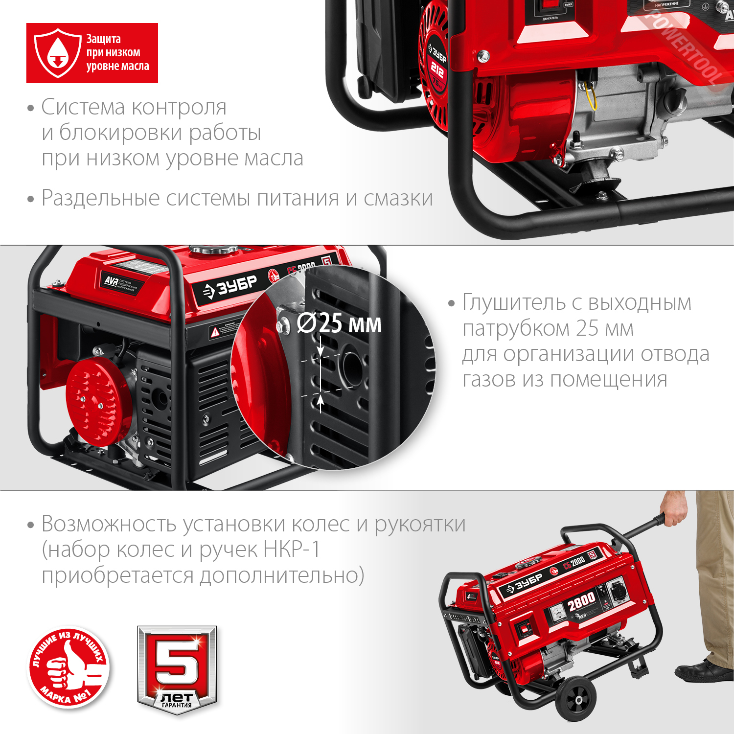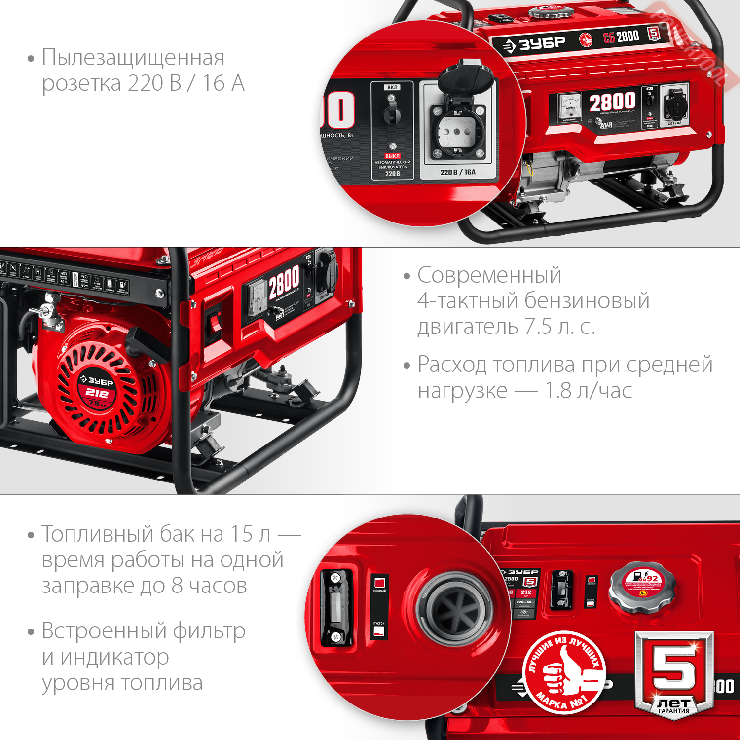 - 1. Бензиновый генератор ЗУБР СБ-2800.