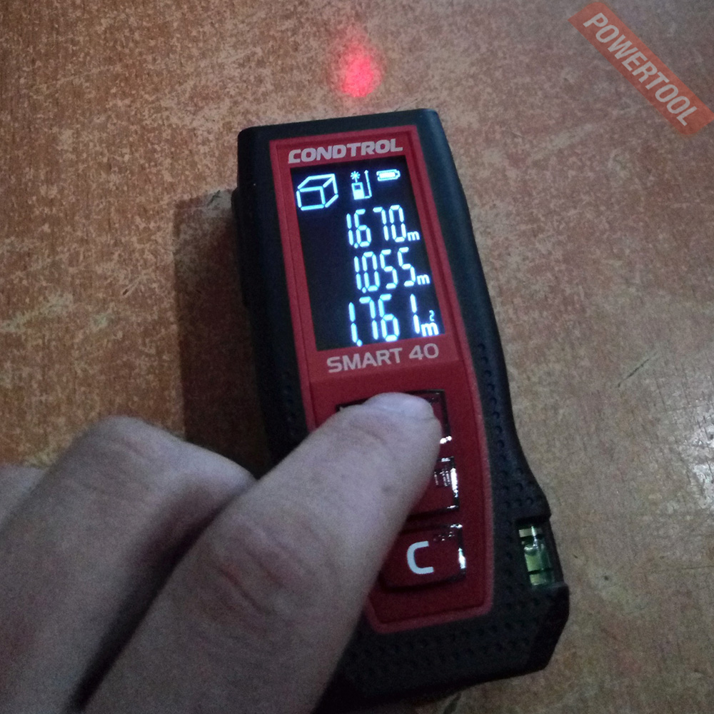 Оптимальный набор функций. CONDTROL SMART 40 имеет режим трекинга, расчёт площади и объёма, а также функцию вычисления по теореме Пифагора.