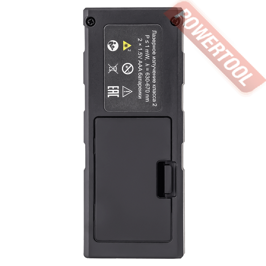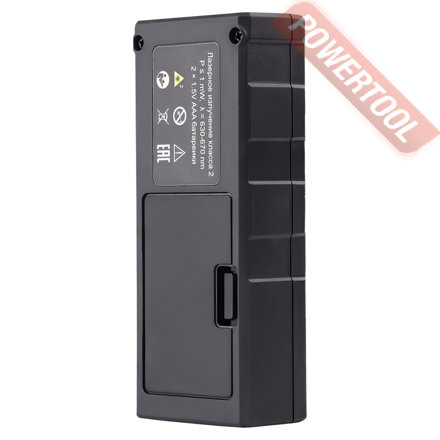 Дальномер лазерный, диапазон измерений 0,05-40 м, точность 2 мм, измерение длины, площади, объема, непрерывные измерения, измерение по Пифагору, min/max значения, точка отсчета нижний край прибора, подсветка, 2 батареи типа ААA, единицы измерения метр/фут/дюйм, габариты 104х43х25,5 мм, вес 0,16 кг, элементы питания.