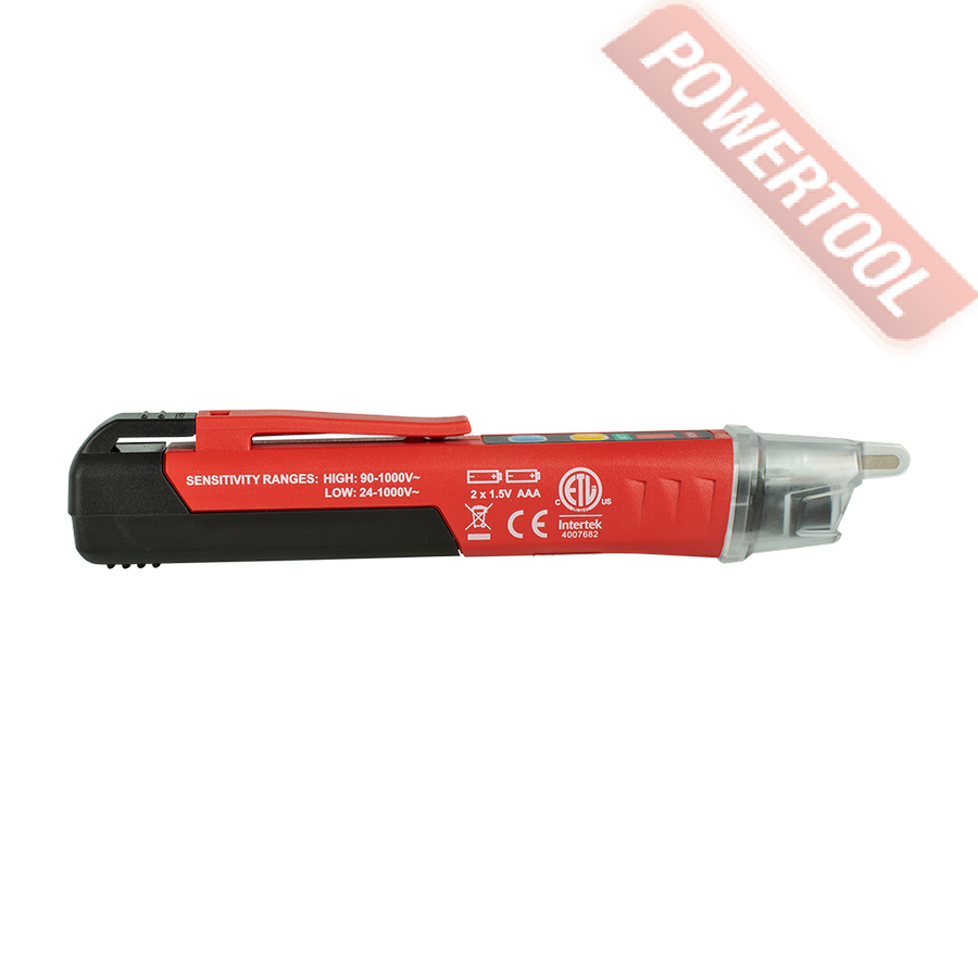 Детектор напряжения бесконтактный, диапазон измерения переменного напряжения от 24 до 1000 В, диапазон частот 50/60 Гц, фонарик, световая/звуковая индикация, питание от 2 батареек 1,5В тип ААА, размер ДхШхВ 150х18х23 мм, вес 0,05 кг, элементы питания.