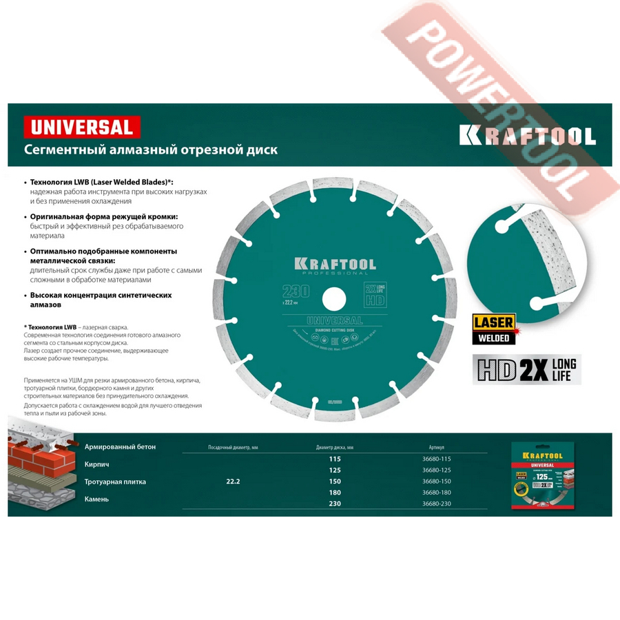 Диск алмазный по железобетону 230х22,23 мм KRAFTOOL Universal арт.36680-230