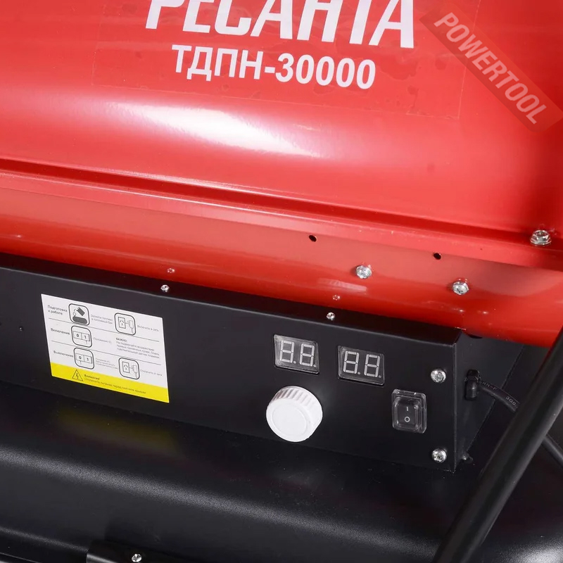 Дизельная тепловая пушка непрямого нагрева РЕСАНТА ТДПН-30000 - жидкотопливный нагреватель воздуха непрямого нагрева, характеризуются высокой эффективностью при обогреве больших помещений, обеспечивая чистый и теплый воздух. Применяется для обогрева закрытых помещений со средним уровнем вентиляции: магазинов, палаток, при проведении выставочных и развлекательных мероприятий. Тепловая пушка оптимальна для работы при строительстве, ремонте и эксплуатации жилых зданий и торговых площадей с вентиляцией. Широко применяется на строительных площадках для прогрева бетона при отрицательных температурах воздуха. Само устройство можно запустить и на улице. При внутреннем монтаже, обязательна подача свежего воздуха, так как процесс горения активно расходует кислород. Также внутренний монтаж в обязательном порядке предусматривает наличие дымоходной трубы на выходном газовом патрубке.