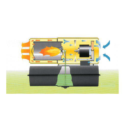 • Нагнетательный осевой вентилятор. Мощный, тихий вентилятор эффективно прогоняет воздух через основную камеру, создает воздушный поток и выдувает теплые массы в окружающее пространство. При этом выполняя две функции снятия излишнего тепла и направления потока. Электродвигатель вентилятора имеет защиту от перегрева и скачков напряжения сети.