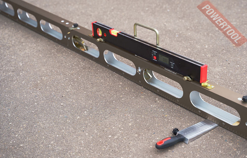 Дорожная рейка складная, высота до 3 м, электронный уровень, измерение уклонов от 0 до 100 процентов, погрешность 3 процента, вес 10 кг.