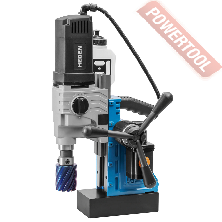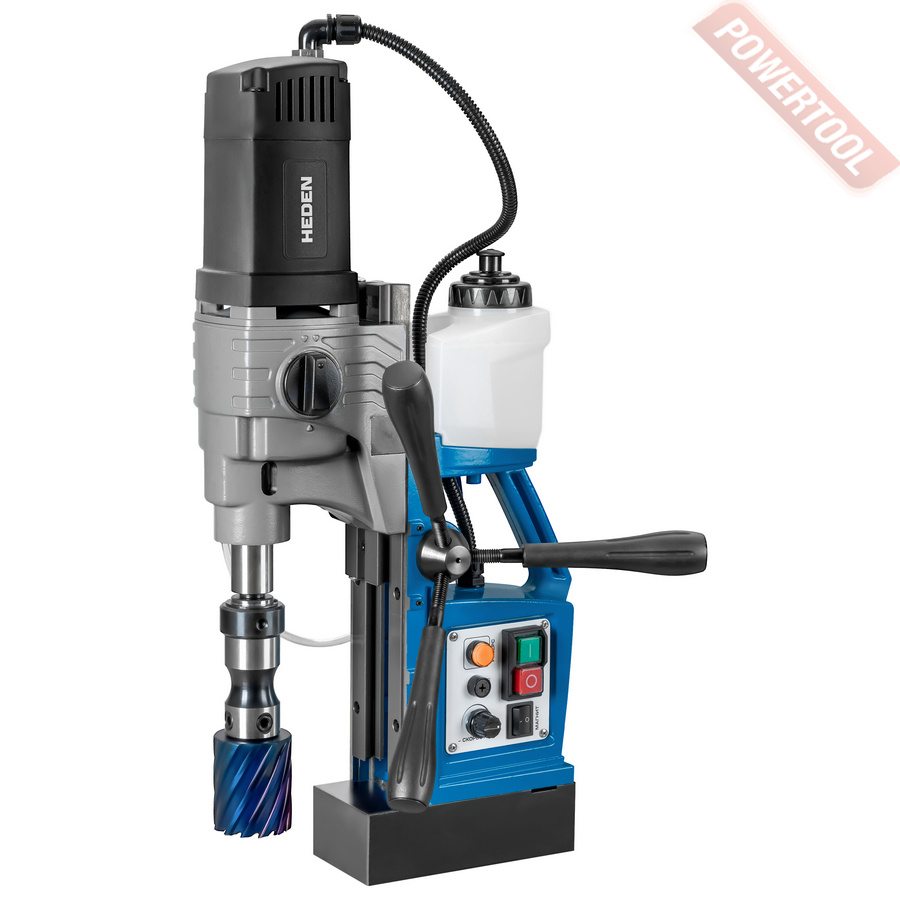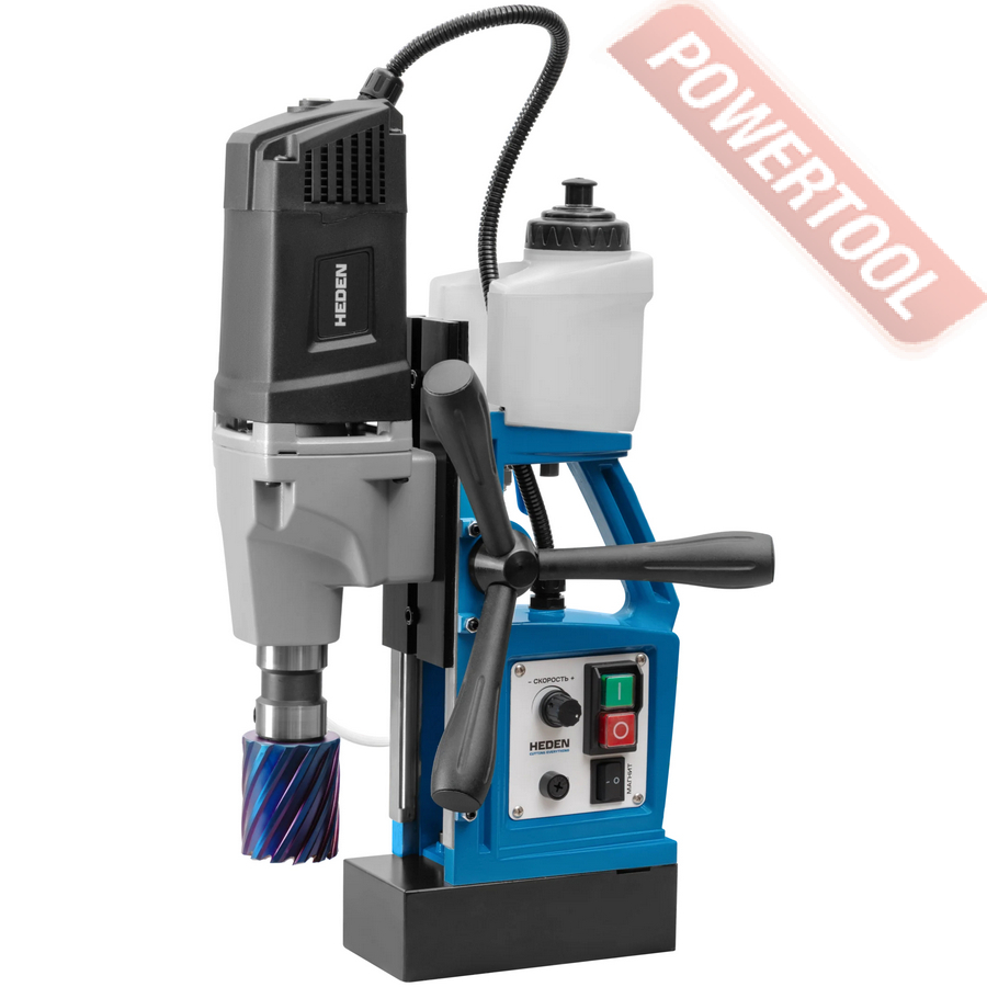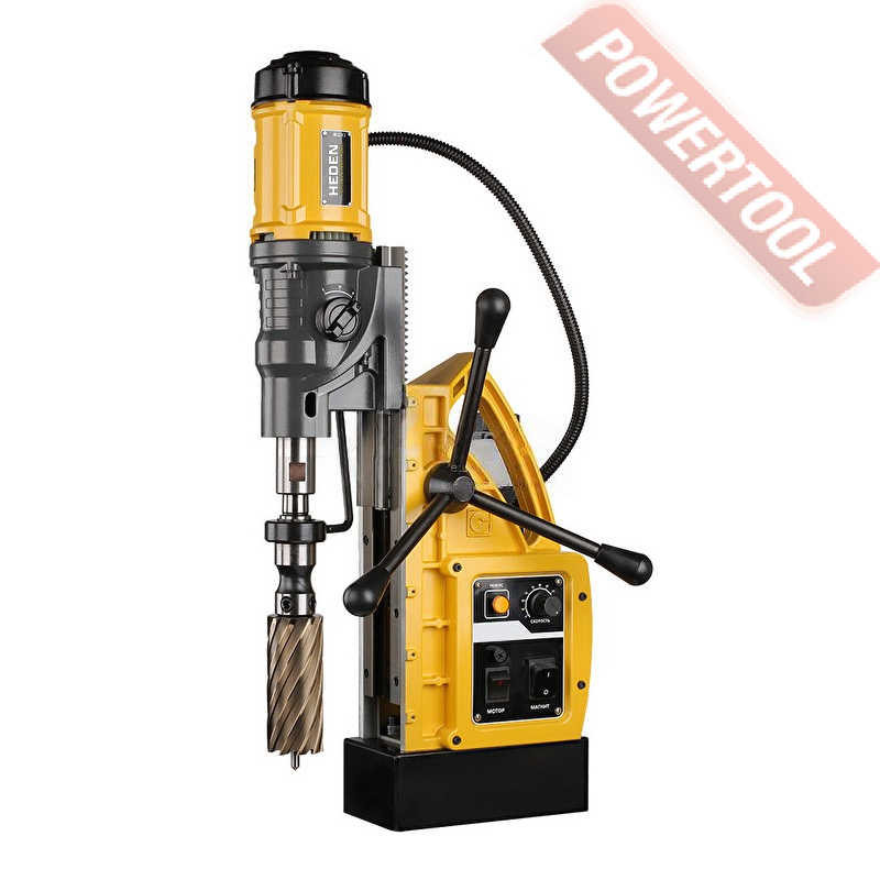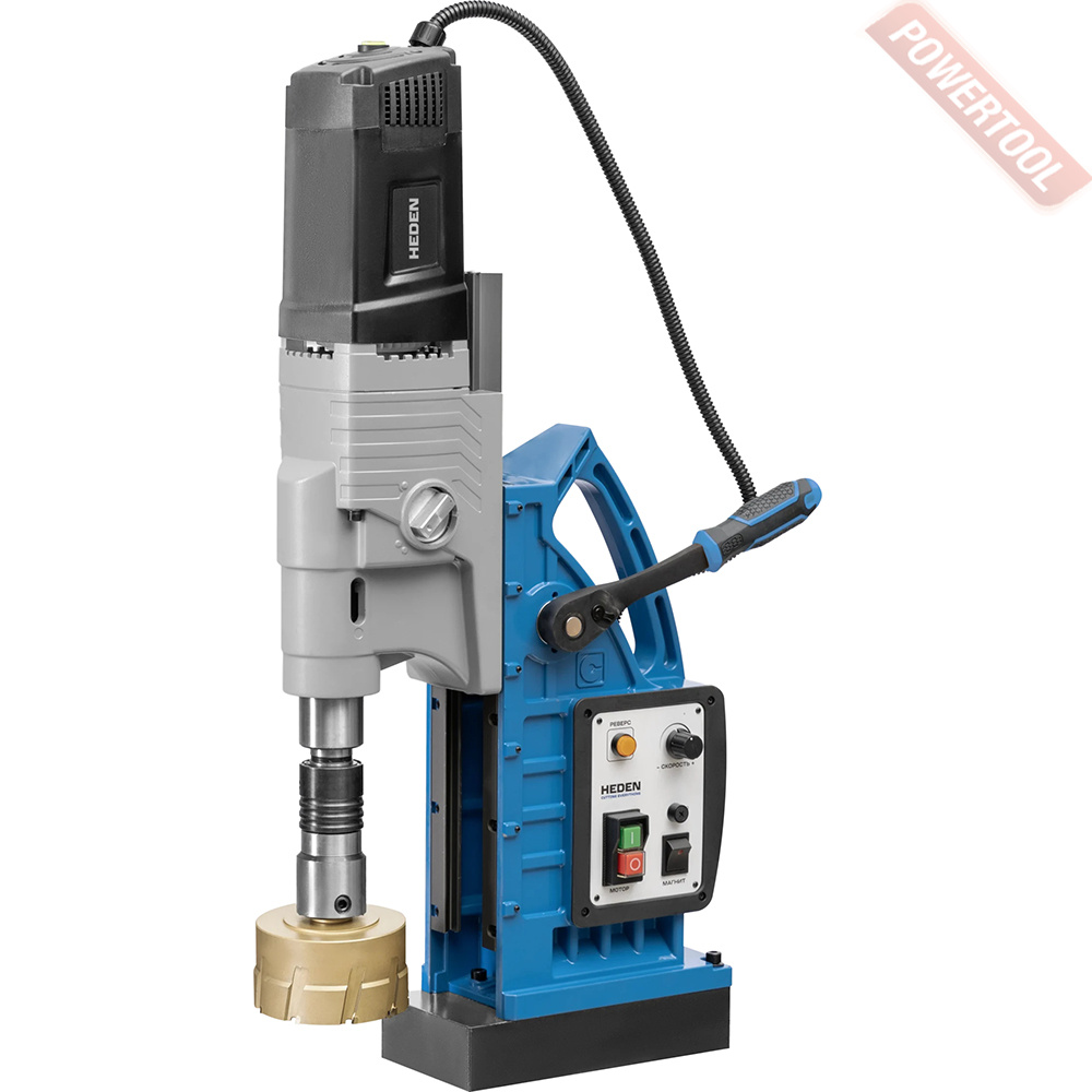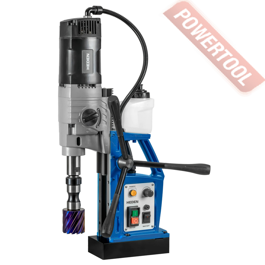 Валентин:Профессиональный инструмент для работы с металлом. Отличная магнитная станина, надежно фиксирующая дрель дает возможность работать как в горизонтальном положении, так и в вертикальном, наклонном и наклонном. Мощный двигатель 1200 Вт достойно справляется с сверлением отверстий диаметром до 42 мм. в металле толщиной до 50 мм. Понравился мягкий старт, электронная панель управления.