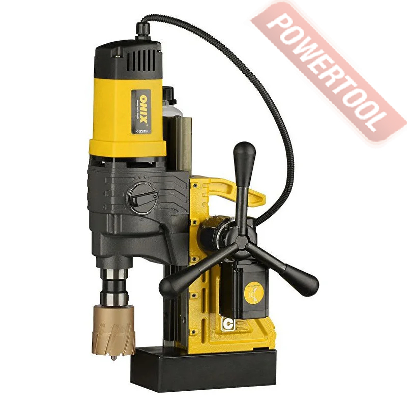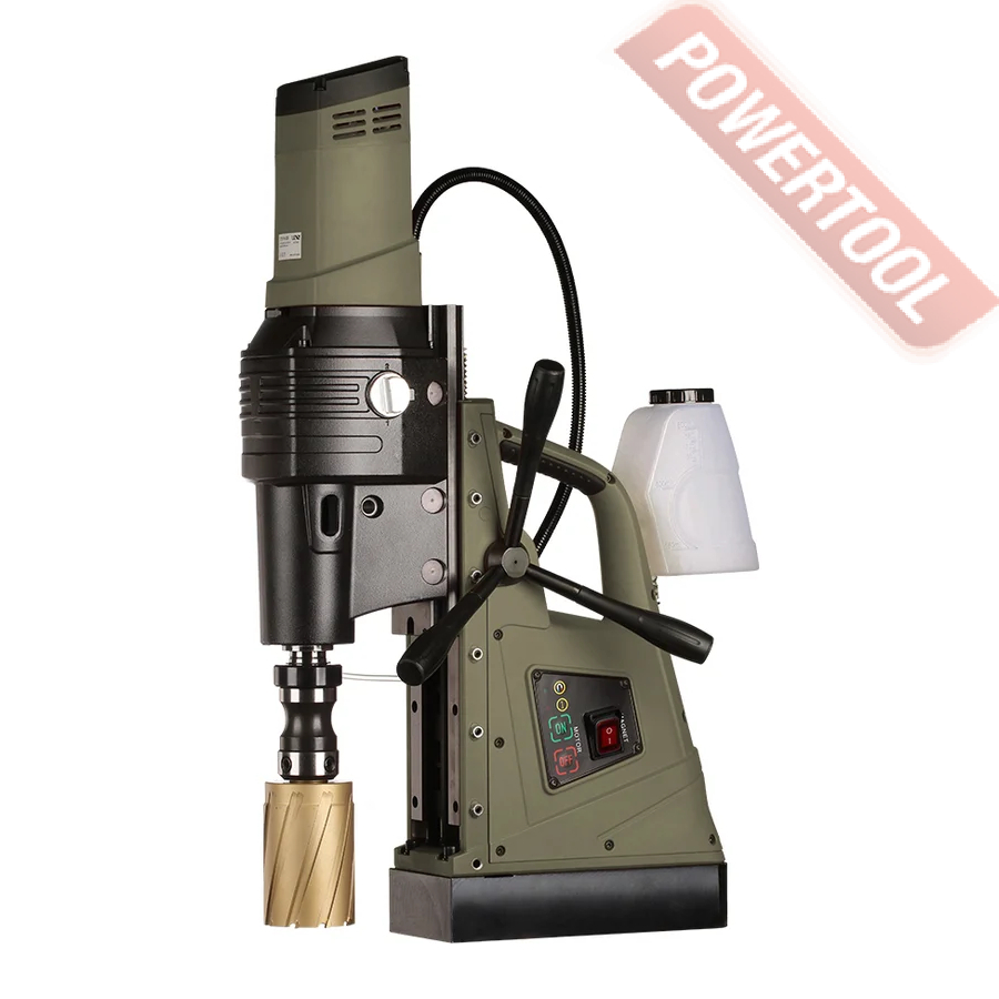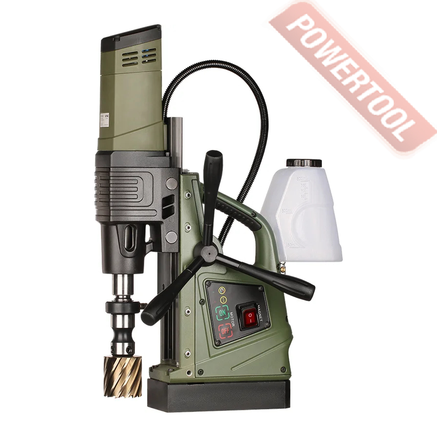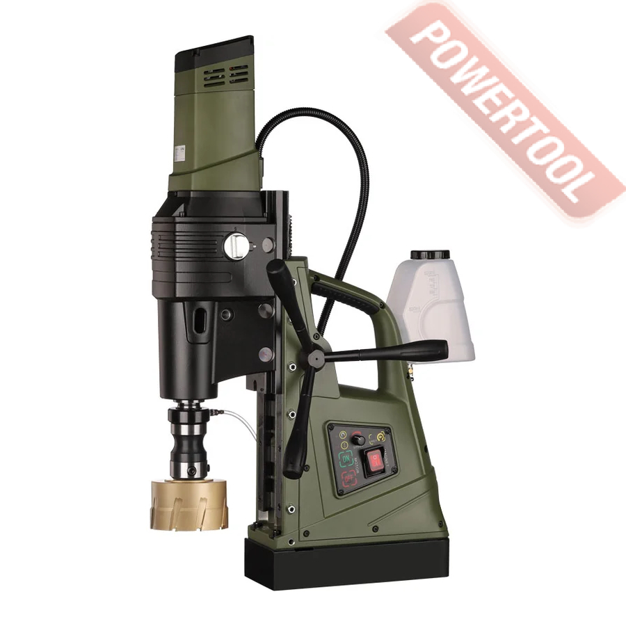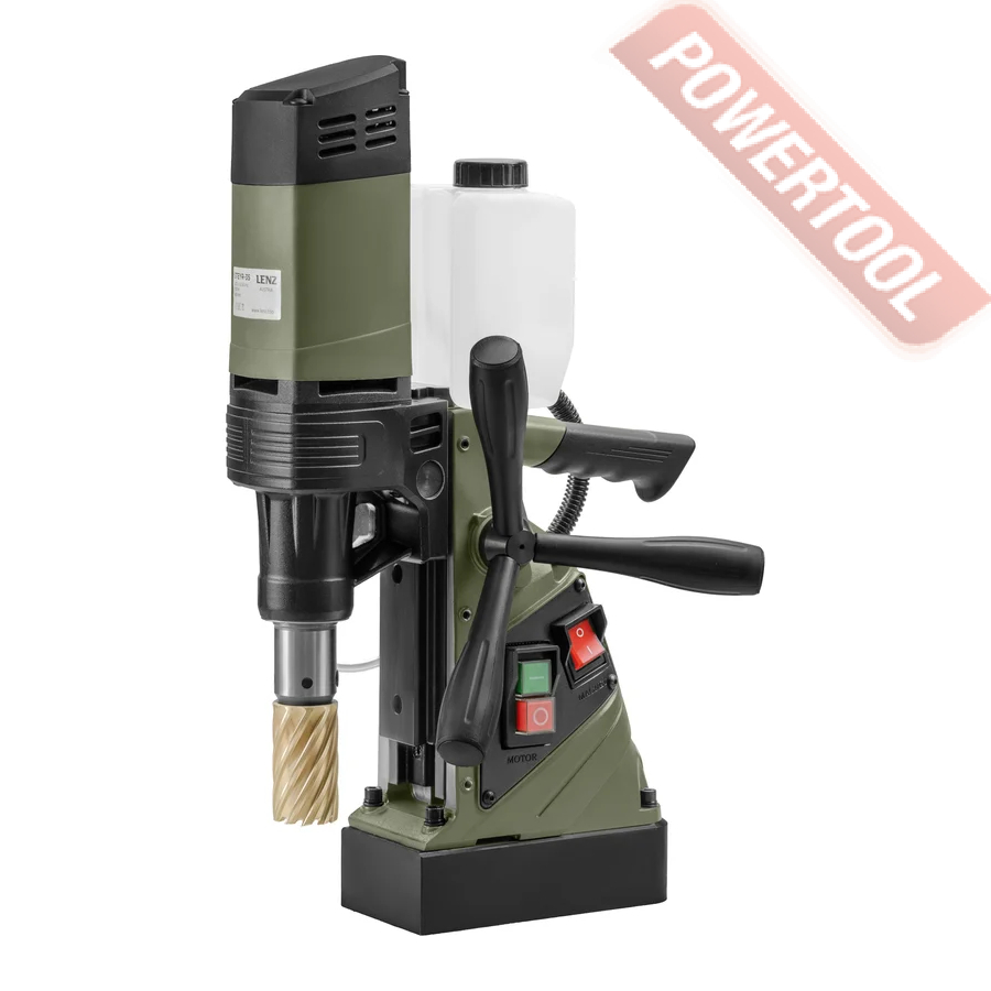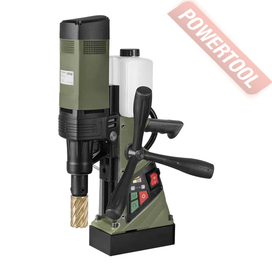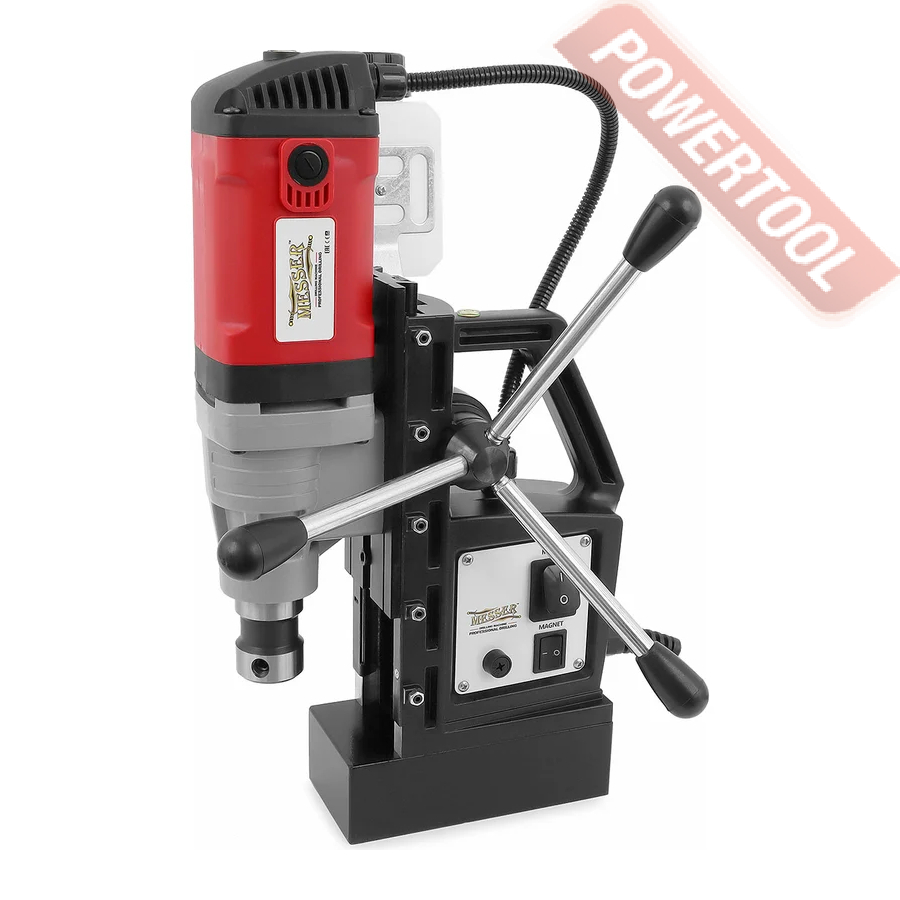 Валентин:Профессиональный инструмент для работы с металлом. Отличная магнитная станина, надежно фиксирующая дрель дает возможность работать как в горизонтальном положении, так и в вертикальном, наклонном и наклонном. Мощный двигатель 1200 Вт достойно справляется с сверлением отверстий диаметром до 42 мм. в металле толщиной до 50 мм. Понравился мягкий старт, электронная панель управления.