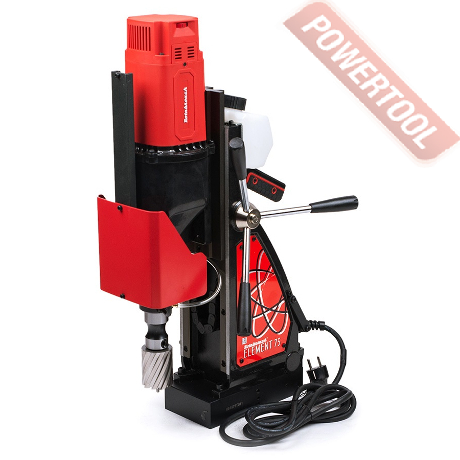 Руслан:Приобрели данную модель для ремонтных работ. Отличная мощность двигателя, высокая производительность, обеспечиваемая трехступенчатым редуктором и электронным блоком управления. Мощная электромагнитная стойка гарантирует устойчивость, безопасность, надежное крепление на металлической поверхности. Данной дрелью можно сверлить с помощью кольцевых фрез отверстия в стальных изделиях диаметром до 42 мм, сверлить металл толщиной до 50 мм. Надежный, профессиональный инструмент для ценителей качества и удобства в работе.