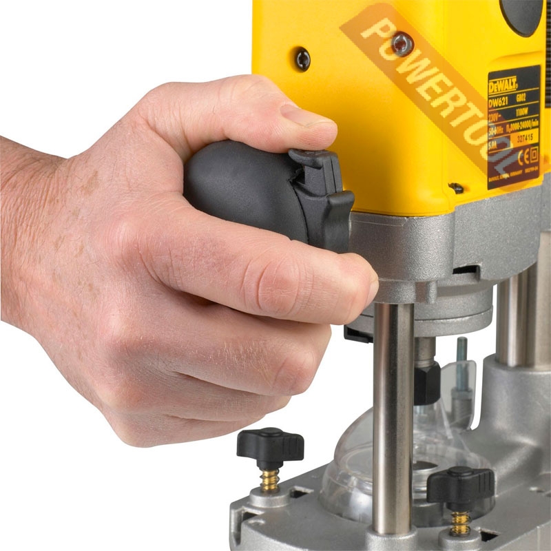 - Фрезер ручной погружной DeWALT DW 621 имеет регулировку глубины фрезерования с точностью до 0.1 мм