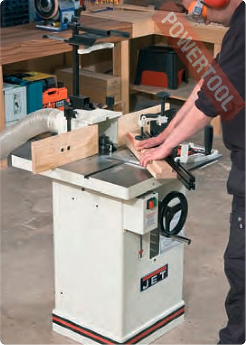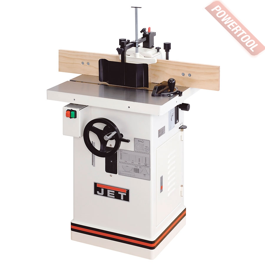 Фрезерный станок по дереву JET JWS-34 KX - профессиональный фрезерный станок с мощным двигателем (особенно в 3-фазном исполнении) и массивным чугунным рабочим столом. Конструкция со сменным шпинделем позволяет значительно расширить спектр решаемых задач. Входящий в комплектацию 30 мм шпиндель соответствует стандартам большинства современных производителей режущего инструмента, а 32 мм (приобретается отдельно) – отечественному. Вместо шпинделя можно установить цанговые зажимы для работы концевыми фрезами. Уникальная особенность JWS-34KX – способность выполнять некоторые шлифовальные операции: в качестве опции доступен шпиндель с набором втулок под абразивные гильзы диаметром от 25 до 100 мм, они используются в основном для доводки кантов. Станок оборудован точным фрезерным упором. Его массивный чугунный корпус совмещен с ограждением фрезы и 100-миллиметровым патрубком пылеотсоса. Для регулировки его перемещают целиком, а после настраивают выступ задней (принимающей) накладки при помощи точного винтового механизма с миллиметровой шкалой. Для фрезерования под углом предназначен упор с транспортирной шкалой (входит в стандартное оснащение) или небольшой подвижный чугунный стол (опция), оснащенный прижимом заготовки и транспортирным упором. Оба приспособления перемещаются вдоль Т-образного паза в рабочем столе.