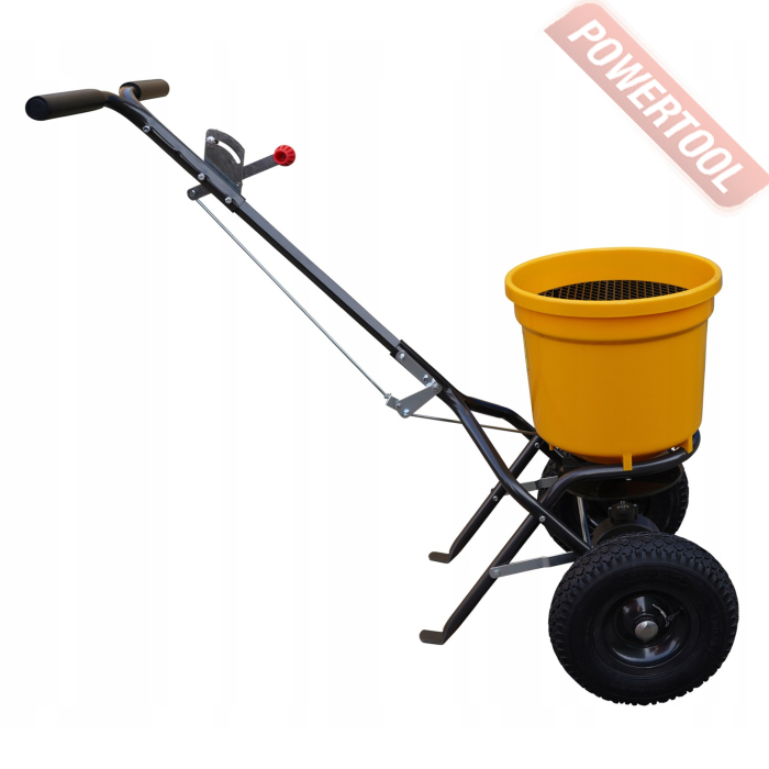- Большие пневматические колеса диаметром 22 см делают работу с этой сеялкой простой и неутомительной на любой поверхности, а особенно в зимний период или на неровном газоне.