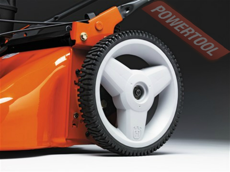 - Шины с резиновым кольцом для улучшения сцепления с поверхностью. Двойной протектор шин имеет горизонтальные и вертикальные канавки. Совместно с оранжевым резиновым кольцом он создает хорошее сцепление с травой и твердыми поверхностями. Резиновое кольцо также обеспечивает тихую и плавную работу на твердых поверхностях.