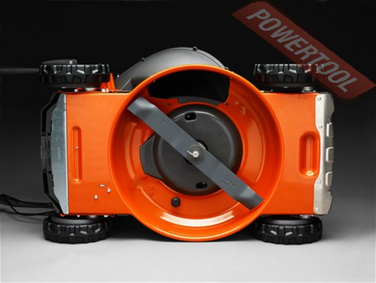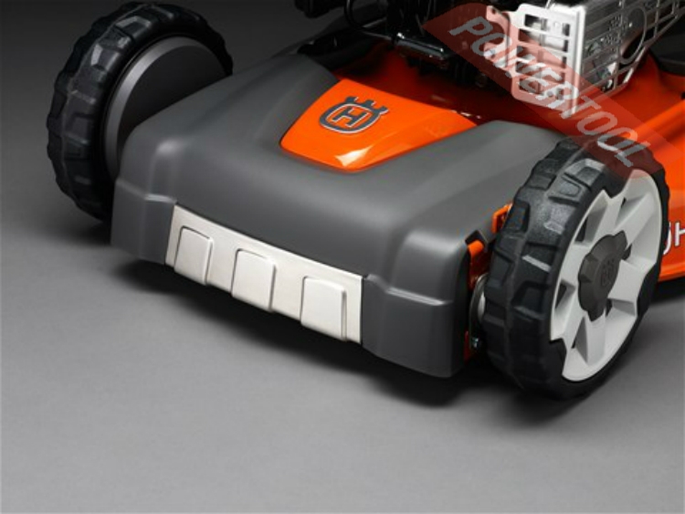 - Бампер из нержавеющей стали. Износостойкий бампер из нержавеющей стали защищает переднюю часть газонокосилки