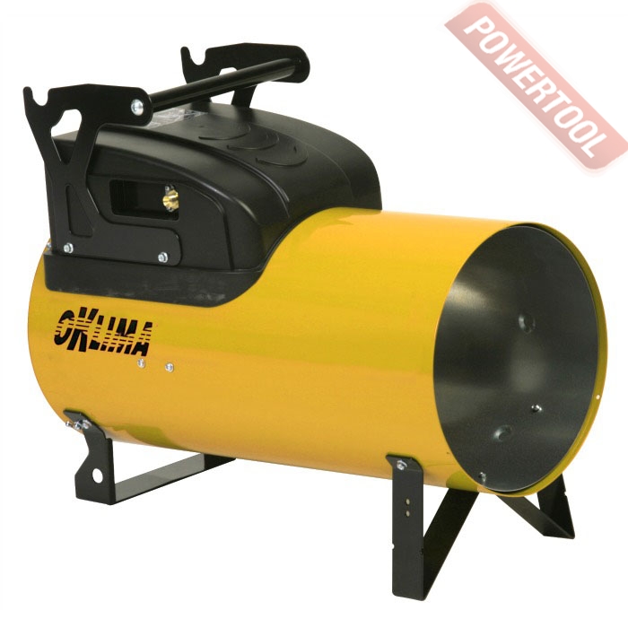 Тепловая газовая пушка, топливо: сжиженный газ (пропан/бутан), напряжение сети 220 В, тепловая мощность 16,7 кВт, расход воздуха 500 куб.м/ч, расход сжиженного газа 1,21 кг/ч, потребляемая мощность 28 Вт, контроль пламени, датчик перегрева, габариты 350х210х315 мм, вес 4,5 кг, газовый шланг, редуктор.