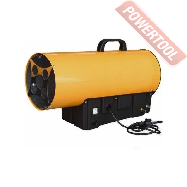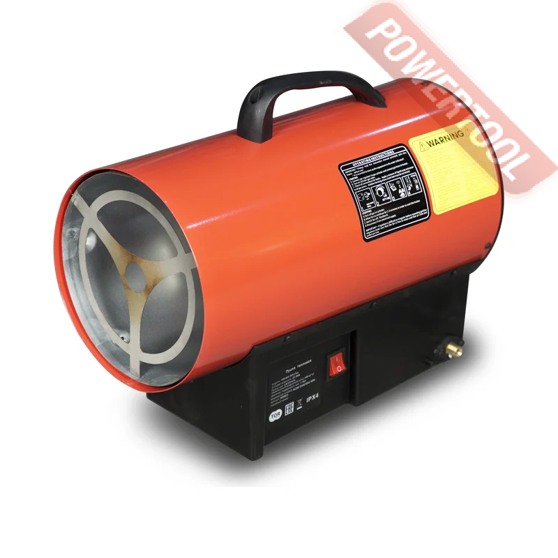 Газовая тепловая пушка MASTER BLP 17 M DC Plus - переносной обогреватель воздуха, работающий на газе, он быстро и эффективно обогревает большие площади. Это оборудование не требует больших затрат и капиталовложений. Газовые нагреватели воздуха широко применяются в помещениях с хорошей вентиляцией: на строительных площадках, заводах и в складских помещениях. Характерные особенности это полное использование топлива, а также обмен тепла благодаря непосредственному смешиванию входящего воздуха с продуктами сгорания. Что касается топлива, то для этих целей подходит баллон с пропаном или бутаном. Соответствующий шланг присоединяется через редуктор к вентилю баллона. Необходимо соблюдать все правила работы с газовыми баллонами. Также необходимо помнить, что процесс горения активно поглощает кислород, который жизненно необходим человеку. Поэтому помещения, где устанавливаются тепловые пушки, должны постоянно проветриваться и иметь хорошую вентиляцию. Для правильной работы обогреватель требует соответствующего количества свежего воздуха. Поэтому он предназначен для использования вне помещений или в помещениях с хорошей вентиляцией, где обеспечено соответствующее количество воздуха. Соответствующую вентиляцию можно обеспечить, приспосабливая обогревательную мощность прибора к площади помещения в соответствии со следующей пропорцией: 1 куб.м на каждые 100 Вт мощности. Ни в коем случае не рекомендуется, чтобы помещение было меньше, чем 100 куб.м. Соответствующий обмен воздуха может быть обеспечен благодаря вентиляционному отверстию, соответствующему следующим требованиям: величина 25 кв.см на 1 кВт обогревательной (минимум 250 кв.см) мощности, размещение точно между верхней и нижней частью помещения.