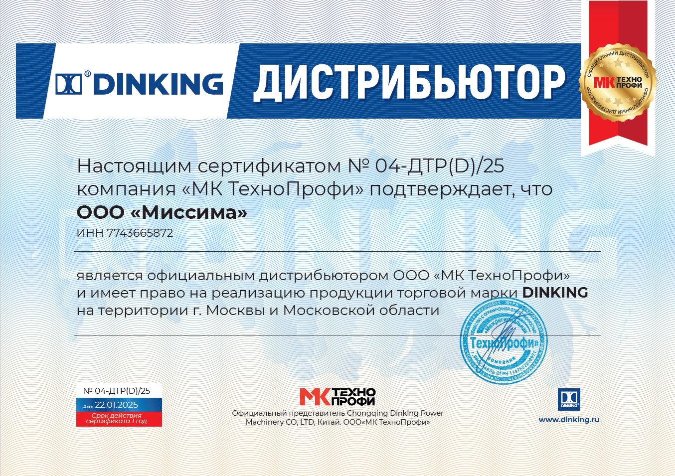 Сертификат DINKING (ДИНКИНГ)