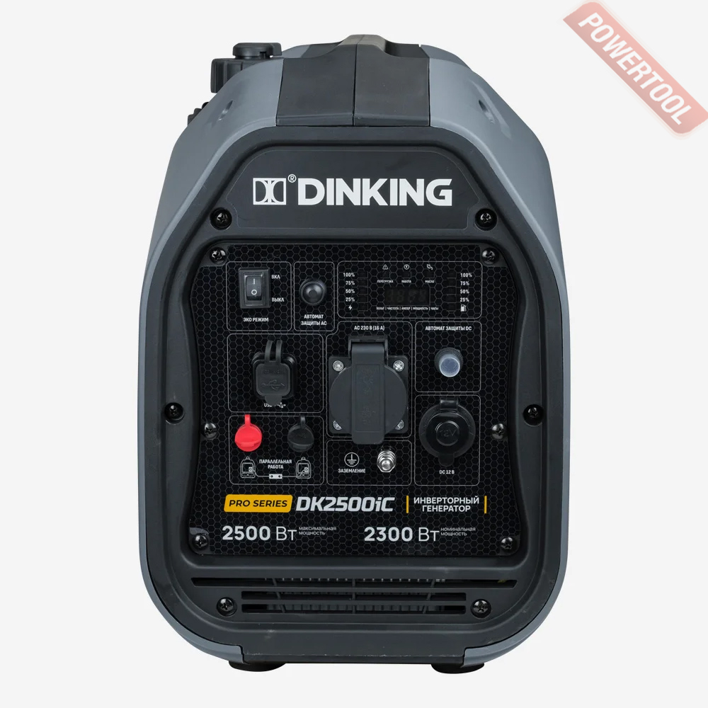 Генератор инверторный DINKING DK2500iC - это удобный, малошумный, портативный и экономичный источник питания с максимальной мощностью 2500 Ватт. Уровень шума при работе инверторного генератора гораздо ниже обычных бензогенераторов, а его компактность позволяет его перевозить даже в обычной легковой машине, он идеально подходит для кемпингов и частных домов, где есть необходимость дополнительного комфорта.