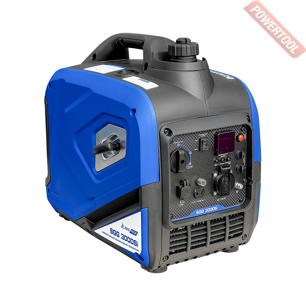 Генератор инверторный ТСС TSS SGG 3000Si в шумопоглащающем кожухе, предназначен для подключения к нему потребителей тока общей максимальной мощностью до 3,5 кВт. Переносной компактный инверторный генератор предназначен для питания электроприборов, на загородном участке, в походе, на рыбалке. Благодаря использованию В этой модели инверторного преобразователя, на выходе получается стабильный ток, без каких-либо скачков, генератор способен регулировать работу двигателя в зависимости от нагрузки: к примеру, если нагрузка составляет половину от выходной мощности, то и мощность двигателя снижается вдвое; это дает значительную экономию топлива. Инверторные модели получаются более легкими и компактными, чем традиционные генераторы.