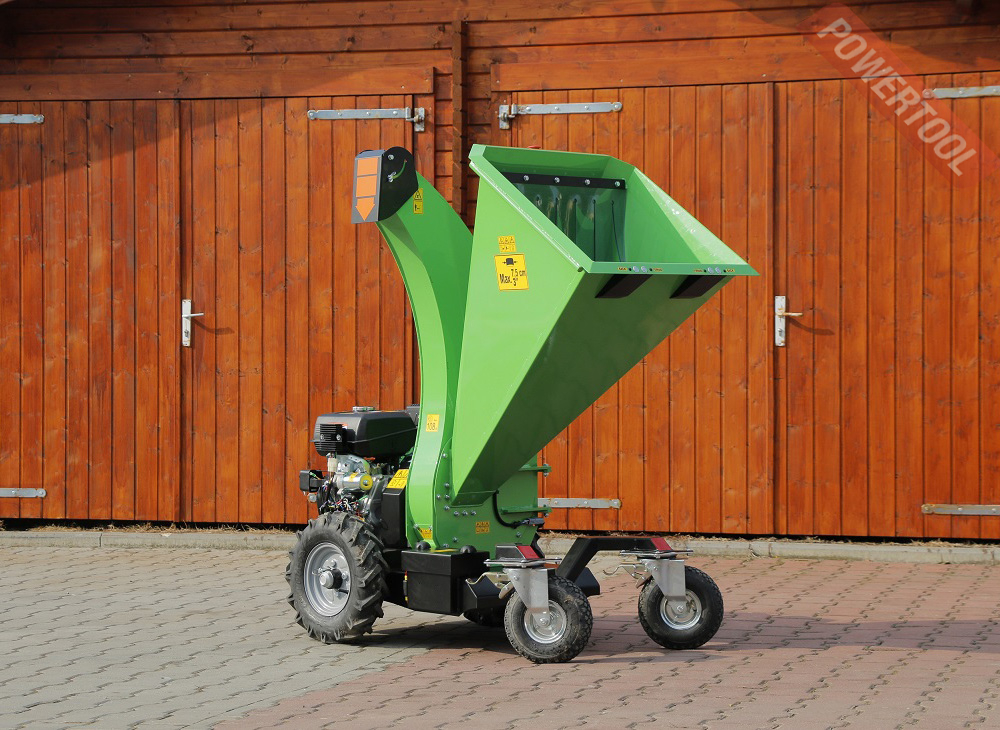 - Транспортировка. Эргономические ручки и большие колеса максимально упрощают любые перемещения щепореза. Его можно легко катить как по слегка наклонной поверхности, например по лугу, так и через бордюры или по крупной брусчатке.