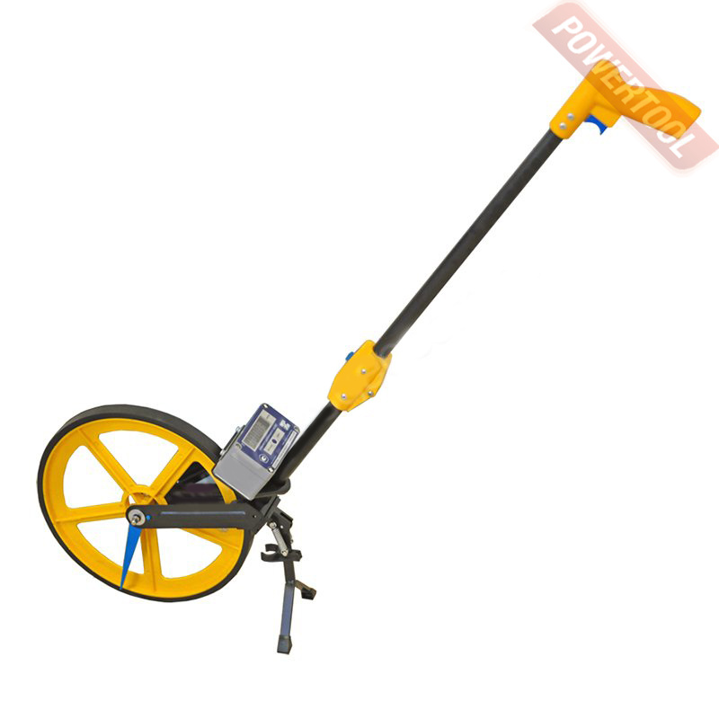 Измерительное дорожное колесо, спицевая конструкция, диаметр колеса 30 см, длина окружности 100 см, счётчик механический на 6 цифр, мах расстояние 9999,9 м, счетчик действует в обоих направлениях движения вперед и назад, складная рукоятка, опорная подставка, вес 3 кг.
