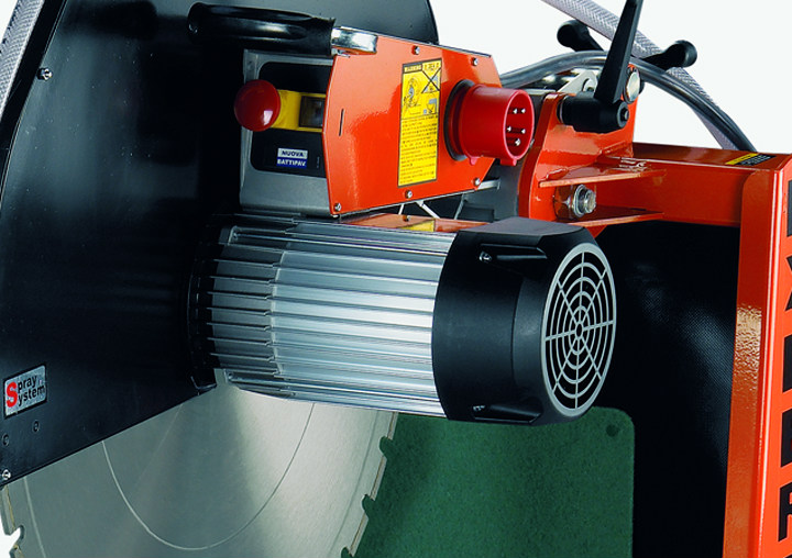 SPRAY SYSTEM - это система подачи воды на алмазный диск. Вода направлена на три важных точки алмазного диска: спереди и с обоих боков режущей кромки. Предотвращает образование пыли при резке и увеличивает срок службы алмазного лезвия,создавая поток воды внутри кожуха диска.