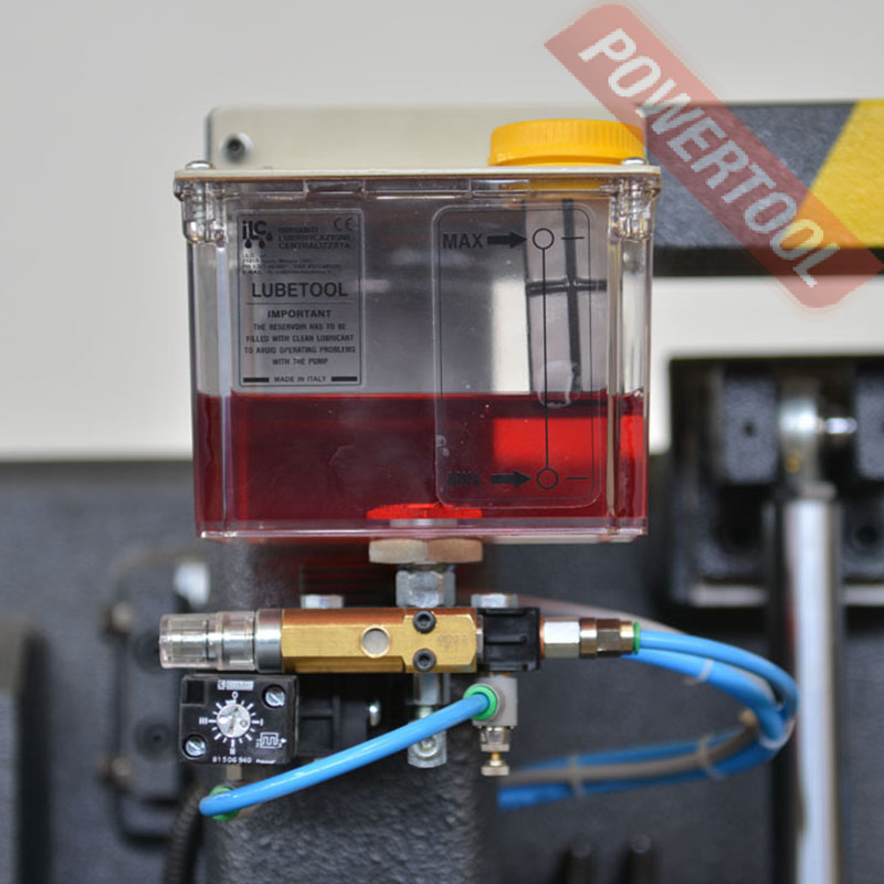 - Мощные вертикальные направляющие с блоком подшипников и твердосплавных пластин позволяют избежать отклонения полотна при резке сплошных материалов. Ручная регулировка положения в зависимости от ширины заготовки.