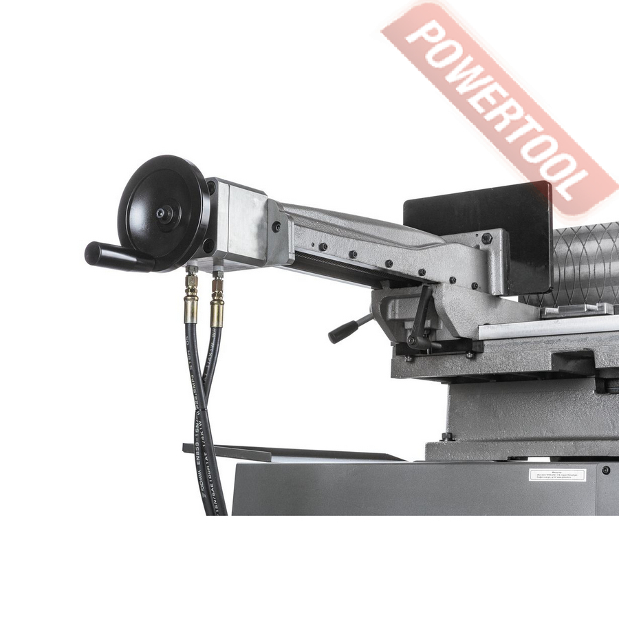 - Гидравлические тиски с широкими рифлеными губками для быстрого и надежного зажима заготовки. Тиски легко перемещаются параллельно заготовке и дают возможность пилить под разными углами. Быстро переставляемые губки тисков позволяют сэкономить время при перенастройке на заготовки с другим сечением.