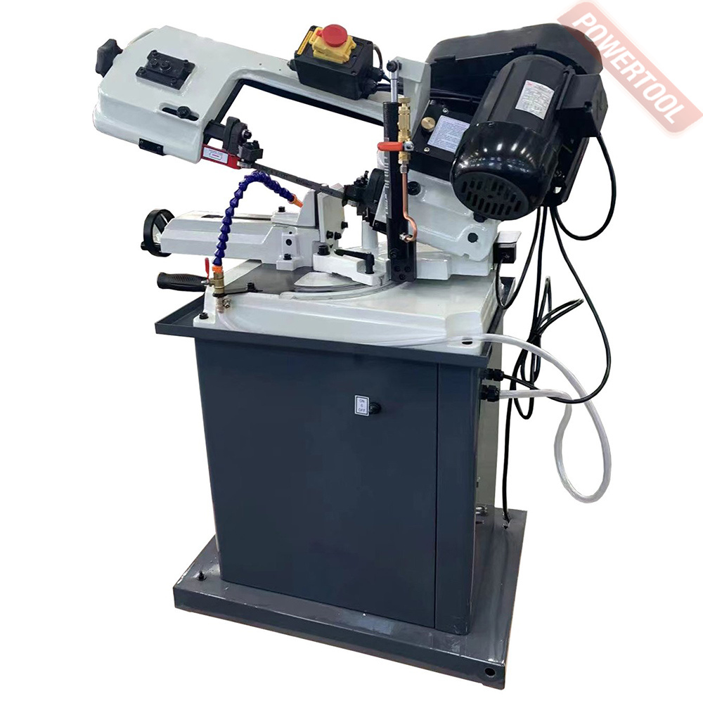 Ленточнопильный станок по металлу с ручным приводом рамы, 550 Вт, 220 В, полотно 1730х13х0,65 мм, скорость полотна 75 м/мин, сечение пропила круг/квадрат/прямоугольник при 90 градусах 130/130х130/180х100 мм, при 45 градусах 115/105х105/115х75 мм, при 60 градусах 70/60х60/70х60 мм, поворот рамы 0-60 градусов, СОЖ 15 л, ручной подъем и опускание рамы, мехнический рабочий цикл, размер ДхШхВ 1030х840х1540 мм, вес 100 кг.