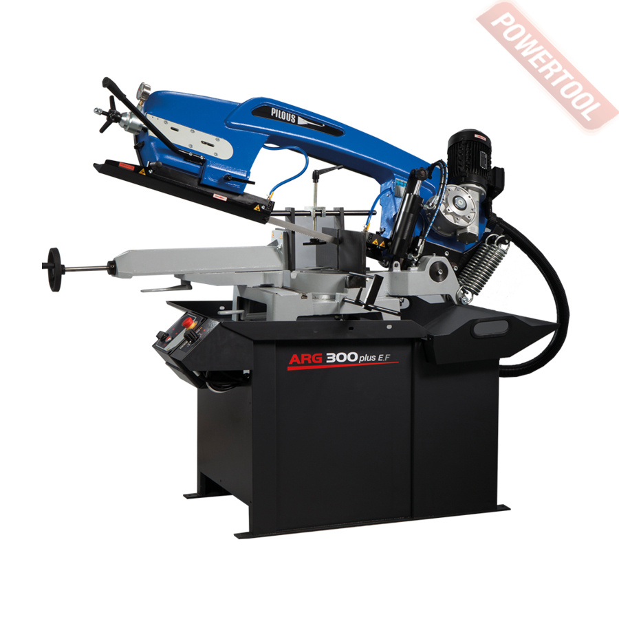 Ленточная пила по металлу PILOUS ARG 300 Plus F - универсальный ленточнопильный станок, предназначен, в основном, для использования в условиях серийного производства, а так же в металлообрабатывающих мастерских и ремонтных цехах производств. Ленточное полотно размерами 27х0.9 представлено на рынке широкой номенклатурой и позволяет обрабатывать огромный спектр материалов, включая нержавеющие и инструментальные стали. Подъем рамы осуществляется вручную, рабочая подача производится под тяжестью собственного веса рамы с возможностью простого регулирования дроссельного клапана подающего гидроцилиндра. После окончания пропила привод пилы автоматически останавливается. Для облегчения подъема рамы, станок оснащен пружинной системой с возможностью регулировки натяжения для изменения усилия необходимого для подъема и опускания рамы.