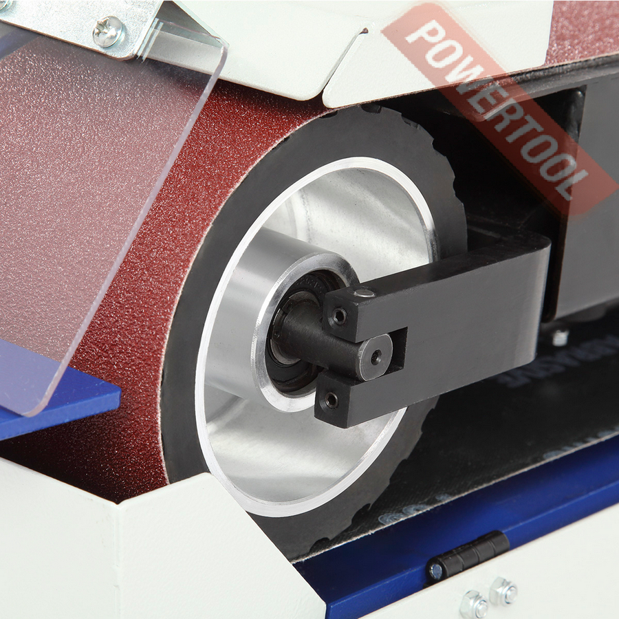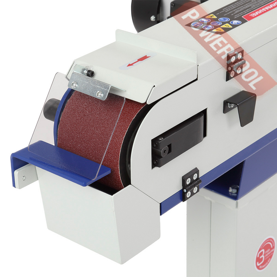 На станке установлена шлифовальная лента размером 1220х100 мм и зернистостью 80 грит. Скорость движения шлифовальной ленты составляет 19 м/с. Применение шлифовальных лент разной зернистости позволяет использовать станок для обработки различных материалов.