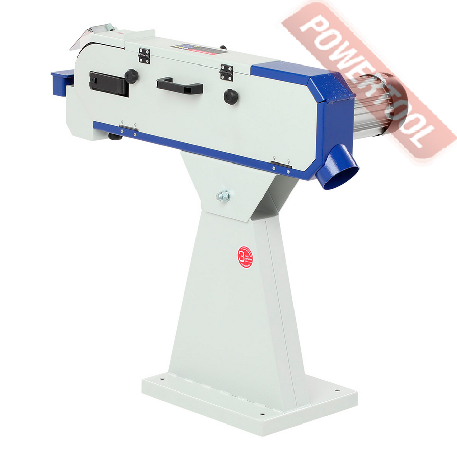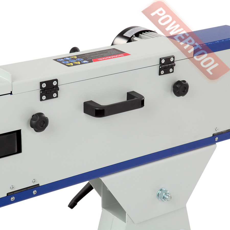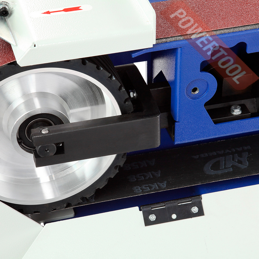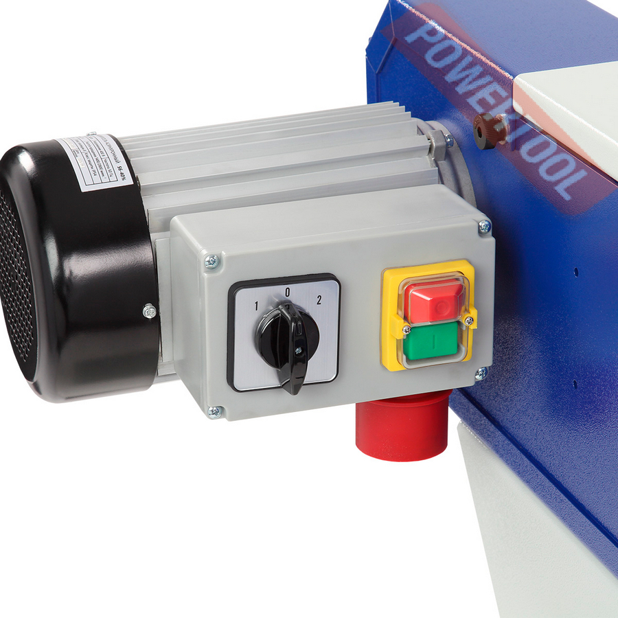 Асинхронный двигатель мощностью 2100 Вт обеспечивает продолжительную и эффективную работу станка. Работает от сети 400 В. Отличительная особенность данной модели – шлифовальный узел может подниматься на 20 градусов и опускаться на 40 градусов. Угол наклона регулирует ручка фиксации, расположенная на опоре.