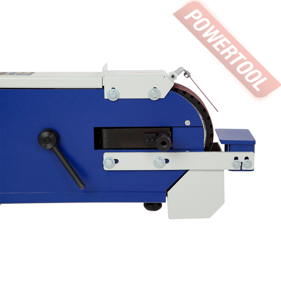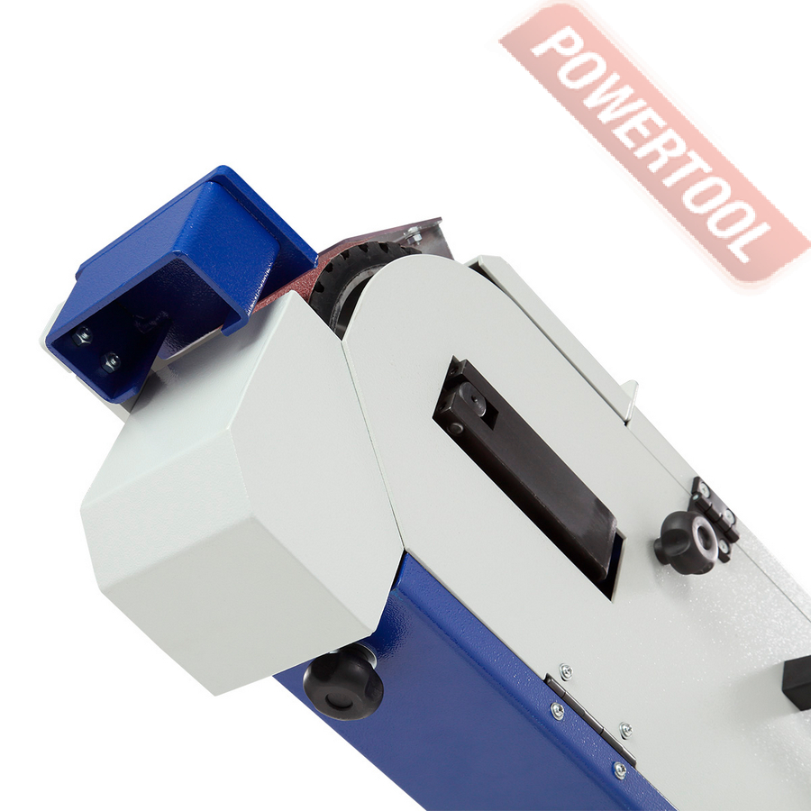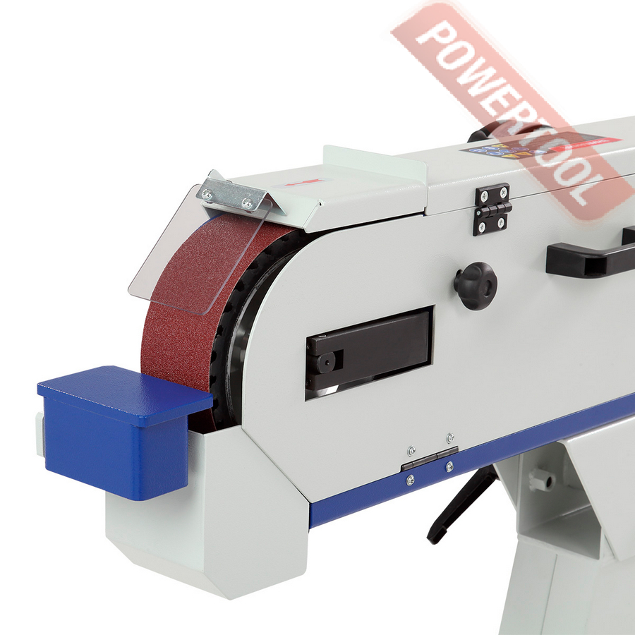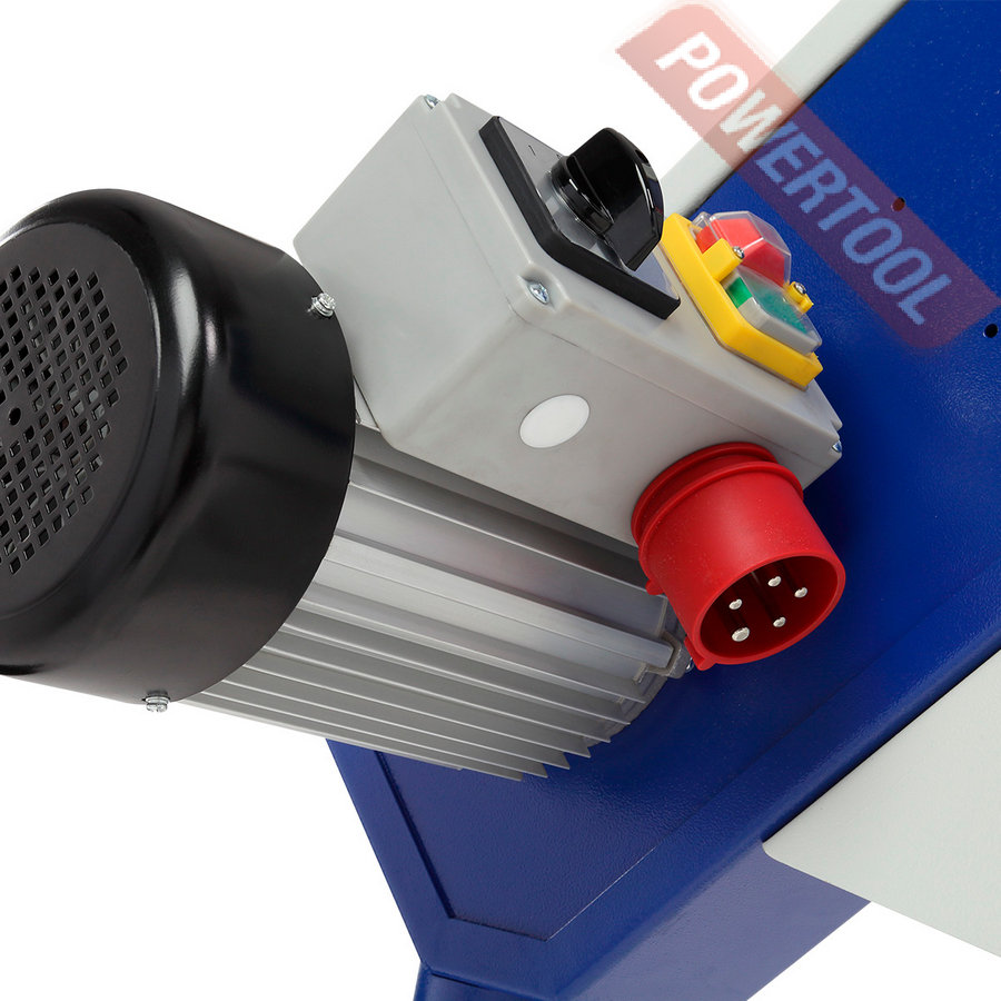 Асинхронный двигатель мощностью 2100 Вт обеспечивает продолжительную и эффективную работу станка. Работает от сети 400 В. Отличительная особенность данной модели – шлифовальный узел может подниматься на 20 градусов и опускаться на 40 градусов. Угол наклона регулирует ручка фиксации, расположенная на опоре.