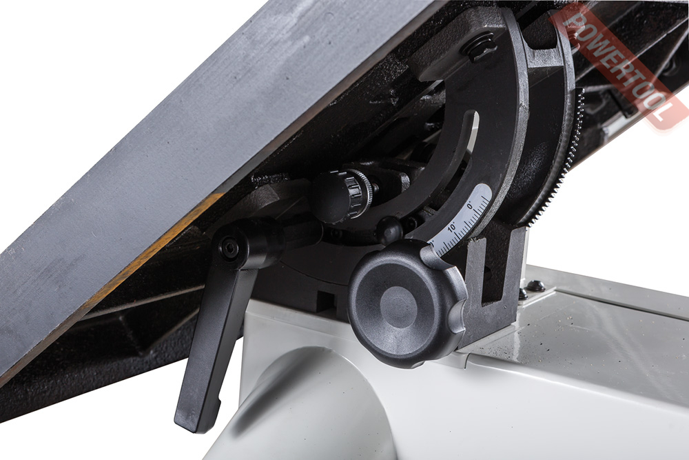 Рабочий стол чугунный, поворотные сегменты, на которые он опирается, из этого же материала. Наклон производится при помощи зубчатого механизма вращением рукоятки и возможен в обе стороны (на 5° в сторону станка и на 45° от него). Для наибольшей эффективности пылеудаления установлено два 100-миллиметровых патрубка: один под рабочей поверхностью, второй в нижней части корпуса.