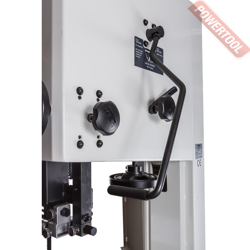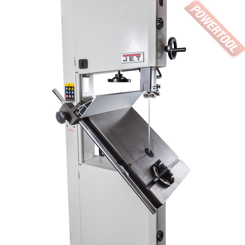 Ленточнопильный станок по дереву JET JWBS-18-M 220V- новая ленточная пила для профессионального применения. Ее основное преимущество на фоне аналогов прошлых поколений – увеличенная высота распиловки. Этот параметр очень важен для тех, кому нужен универсальный станок, способный взять на себя функции делительного. К подобным работам приспособлен и параллельный упор: направляющий профиль можно установить вертикально на боковую грань так, чтобы надежно фиксировать плоские заготовки при их роспуске на тонкие пластины. В целом конструкция бокового упора очень хорошо проработана и соответствует самым строгим требованиям: профиль жесткий и прочный, закреплен на массивном чугунном кронштейне, который перемещается по цилиндрической направляющей. Предусмотрена грубая (вручную) и точная (микрометрическим винтом) установка.