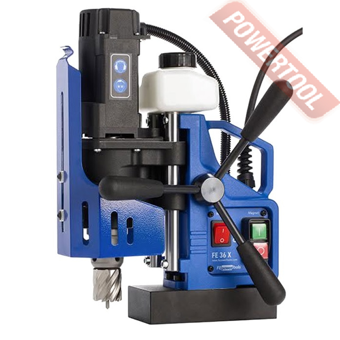 Магнитный сверлильный станок FE POWERTOOLS FE 36 X - самый компактный и легкий станок из модельного ряда данного типа сверлильных машин. Сверлильная машина на магнитной подушке FE 36 X проста и надежна в работе, имеет достаточно высокую производительностью, оптимальную жесткостью сверления, точность, функциональность. При их использовании без труда выполняются сквозные сверлильные отверстия в диаметре до 50 мм. Комплект поставки включает все необходимое для того, чтобы немедленно приступить к работе – ЗИП, страховочная цепь, патрон для крепления инструмента.