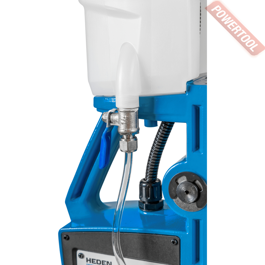 Магнитный сверлильный станок HEDEN DM-36K выполняет сверление корончатыми сверлами диаметром до 36 мм и спиральными сверлами диаметром до 13 мм. Направляющие типа двойной ласточкин хвост позволяют перемещать и закреплять привод в любом положении. Благодаря этому можно работать с длинными спиральными сверлами или сверлить ниже уровня основания станка.