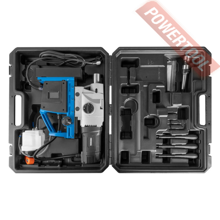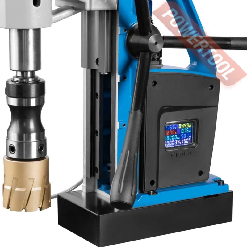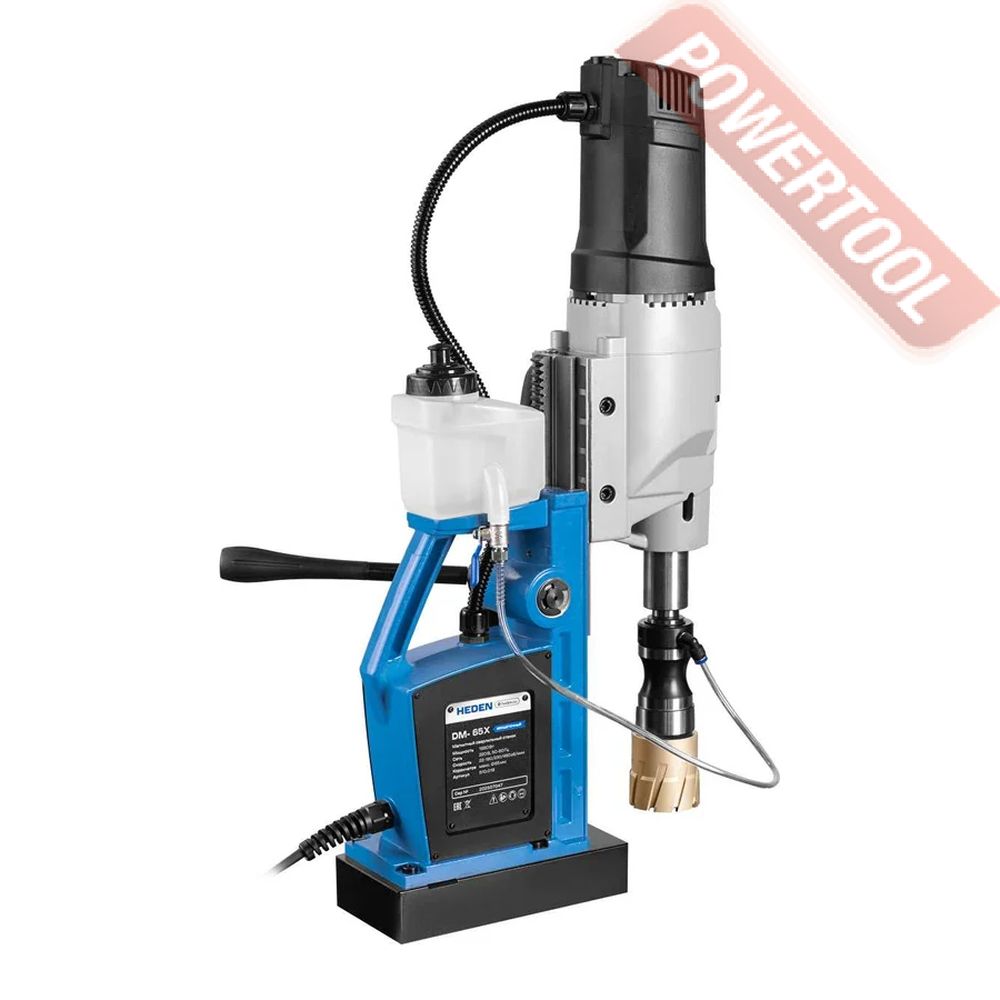 Магнитный сверлильный станок HEDEN DM-65X выполняет сверление корончатыми сверлами диаметром до 65 мм. Станок надежно фиксируется на горизонтальных стальных поверхностях благодаря мощной магнитной основе.
