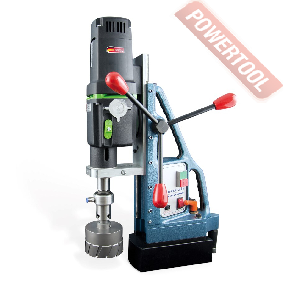 Магнитный сверлильный станок KARNASCH KA 100 Blue-Mag предназначенный для сверления, зенкования, развертывания при работе со стальными конструкциями, ремонте крупногабаритной техники, в различных отраслях промышленности, в строительстве. Система двойных рельсовых направляющих рассчитана на большую нагрузку с глубиной сверления до 200 мм. Оснащен механической муфтой.