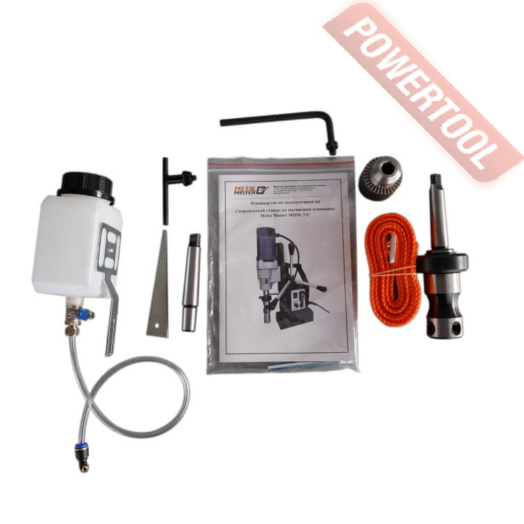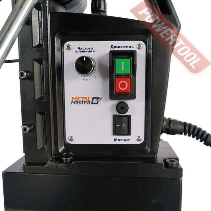 Магнитный сверлильный станок METAL MASTER MDM-50P предназначенный для обработки резанием заготовок из конструкционных материалов (сталей, чугунов, сплавов цветных металлов). Данное оборудование применяется для сверления и рассверливания отверстий в труднодоступных местах, экстремальных и полевых условиях. Конструктивной особенностью данного класса станков является электромагнитное основание необходимое для надёжной фиксации станка на заготовке в различных положениях (в том числе горизонтальном и перевернутом).
