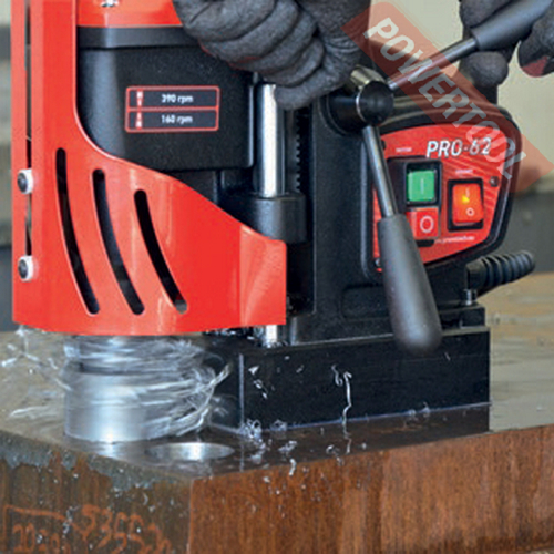 Магнитный сверлильный станок PROMOTECH PRO-62 используется для выполнения сквозных отверстий кольцевыми фрезами TCT и HSS диаметром до 65 мм. Двойные направляющие обеспечивают рабочий ход 95 мм. Система безопасности станка контролирует и предотвращает отрыв магнитного основания (в случае перегрузки, недостаточной силы магнитного притяжения к поверхности и т. д.).