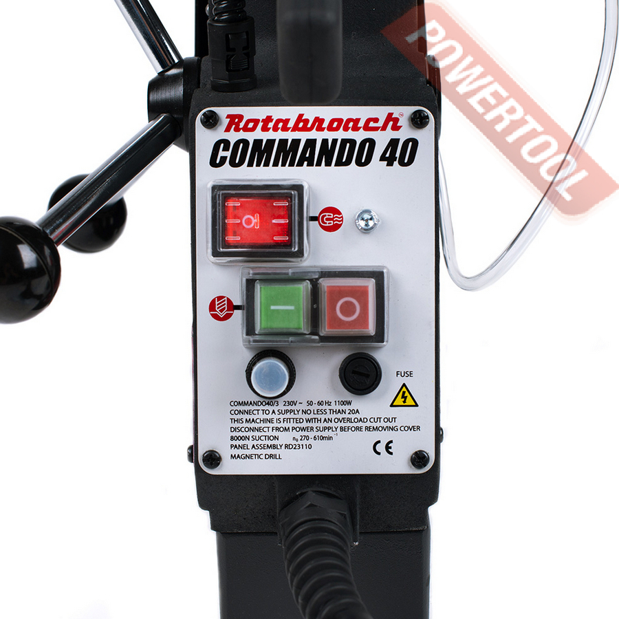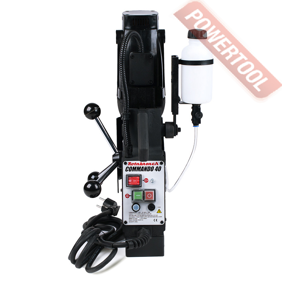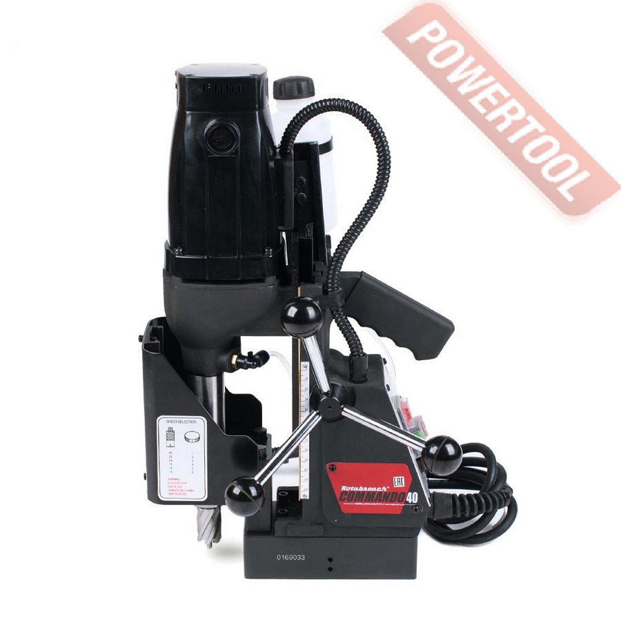 Магнитный сверлильный станок ROTABROACH Commando 40 - мобильное металлообрабатывающее оборудование, предназначенное для обработки деталей сложной конфигурации и крупных размеров и подходит для серийного или единичного производства деталей, метизов, рабочих инструментов, строительных конструкций, декоративных изделий из металла, а также ремонта узлов, деталей и запасных частей для машин и механизмов.