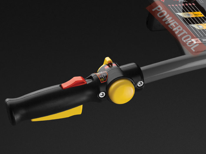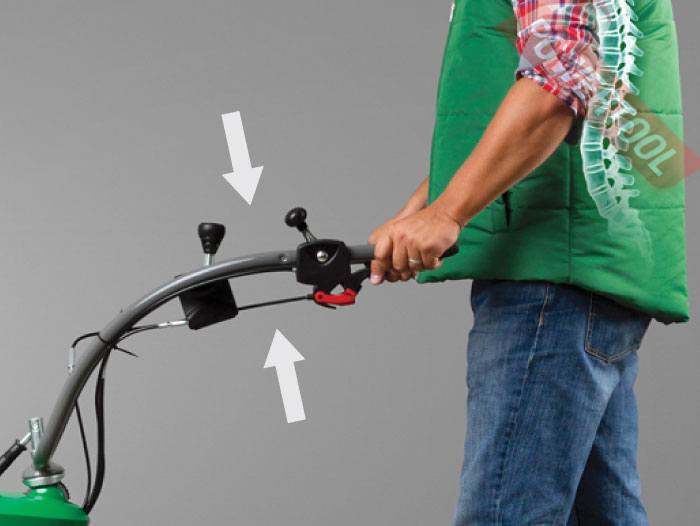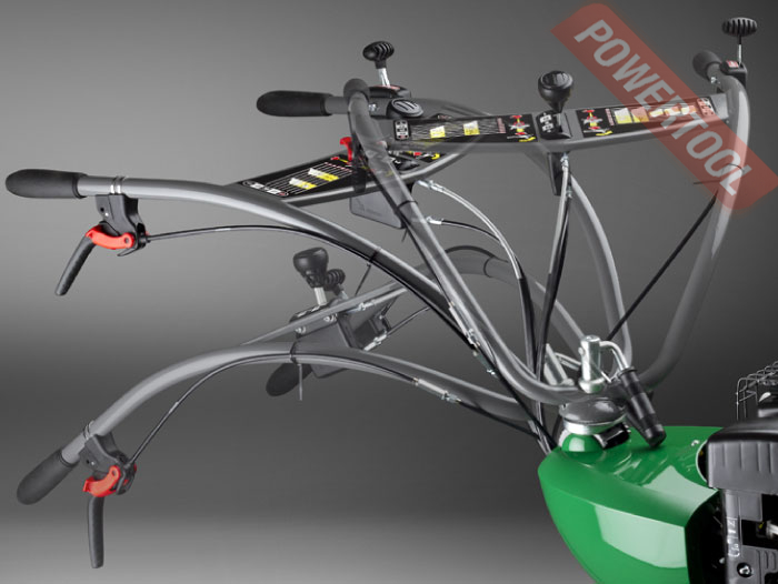 - Эллиптическая складная регулируемая рукоятка. Вертикальная регулировка дает возможность комфортно работать пользователю любого роста. Регулировка в горизонтальной плоскости позволяет оператору не заступать на обработанную зону, а также работать вплотную к ограждениям или сооружениям.