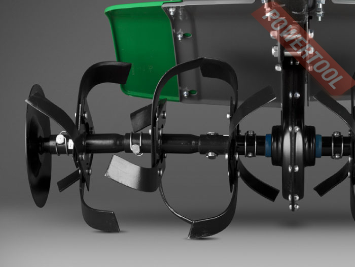- Культиваторные фрезы Razor Blade из закаленной стали. Благодаря специальной конфигурации, фрезы входят в почву под определенным углом и способны справиться с любым типом почвы.