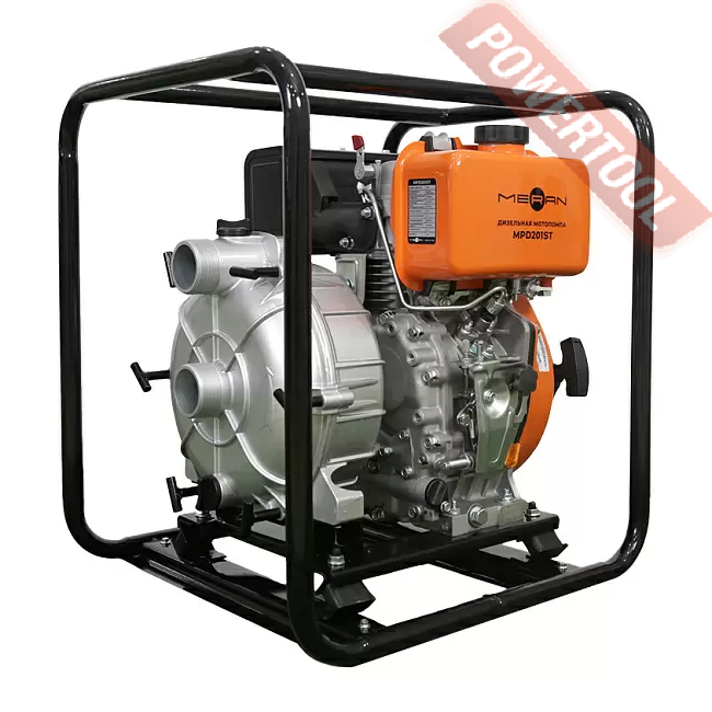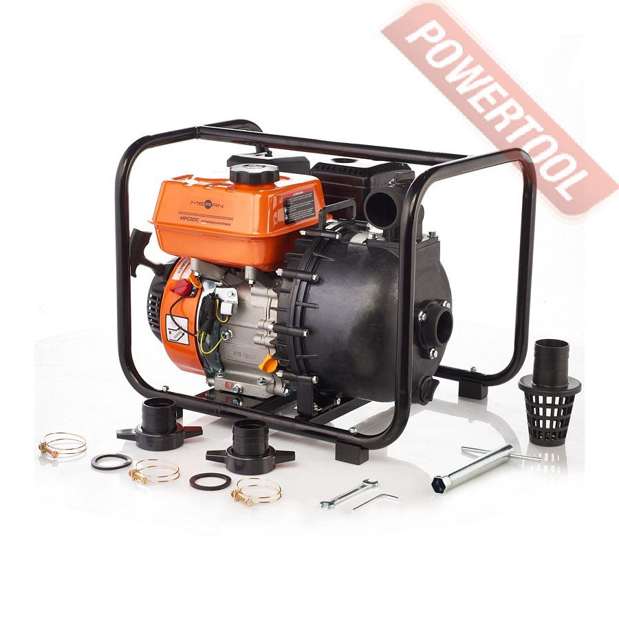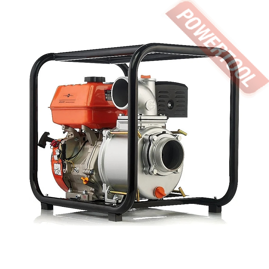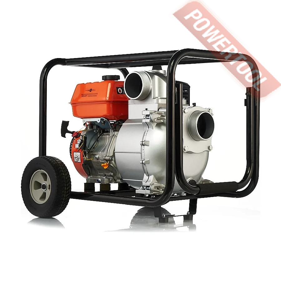 - Мотопомпа для грязной воды. Главное отличие - более высокая производительность и пропускная способность. Через грязевую помпу могут проходить твердые частицы. Еще одна полезная опция таких устройств - быстрый доступ к насосу для извлечения твердых предметов, размер которых превышает его пропускные возможности. Производительность бытовых помп для перекачки грязной воды может достигать 2000 литров в минуту при высоте подъема до 35 метров. Диаметры входного и выходного патрубков у них находятся в диапазоне от 50 до 100 мм.