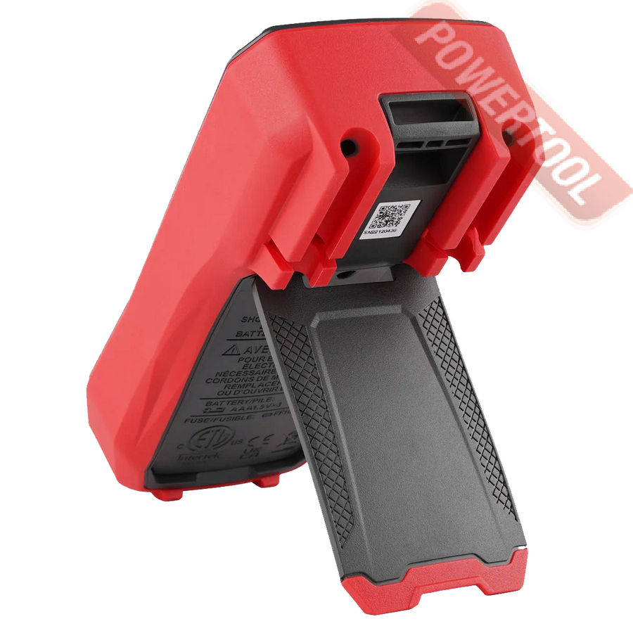 - Продуманная эргономика. На задней поверхности устройства расположены петля для подвешивания и откидная подставка, которые позволяют установить измеритель так, чтобы специалисту было максимально удобно считывать показания, а руки были свободны для работы с щупами.