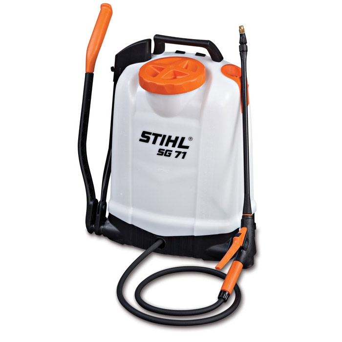 Опрыскиватель помповый ранцевый STIHL SG 71 - ранцевый распылитель для профессионального использования. Максимально комфортное управление благодаря возможности монтажа насосного рычага с левой или с правой стороны, а также регулировке ширины и длины. Высококачественные ремни и эргономичная спинка для удобного ношения. Эргономичный запорный клапан с манометром.